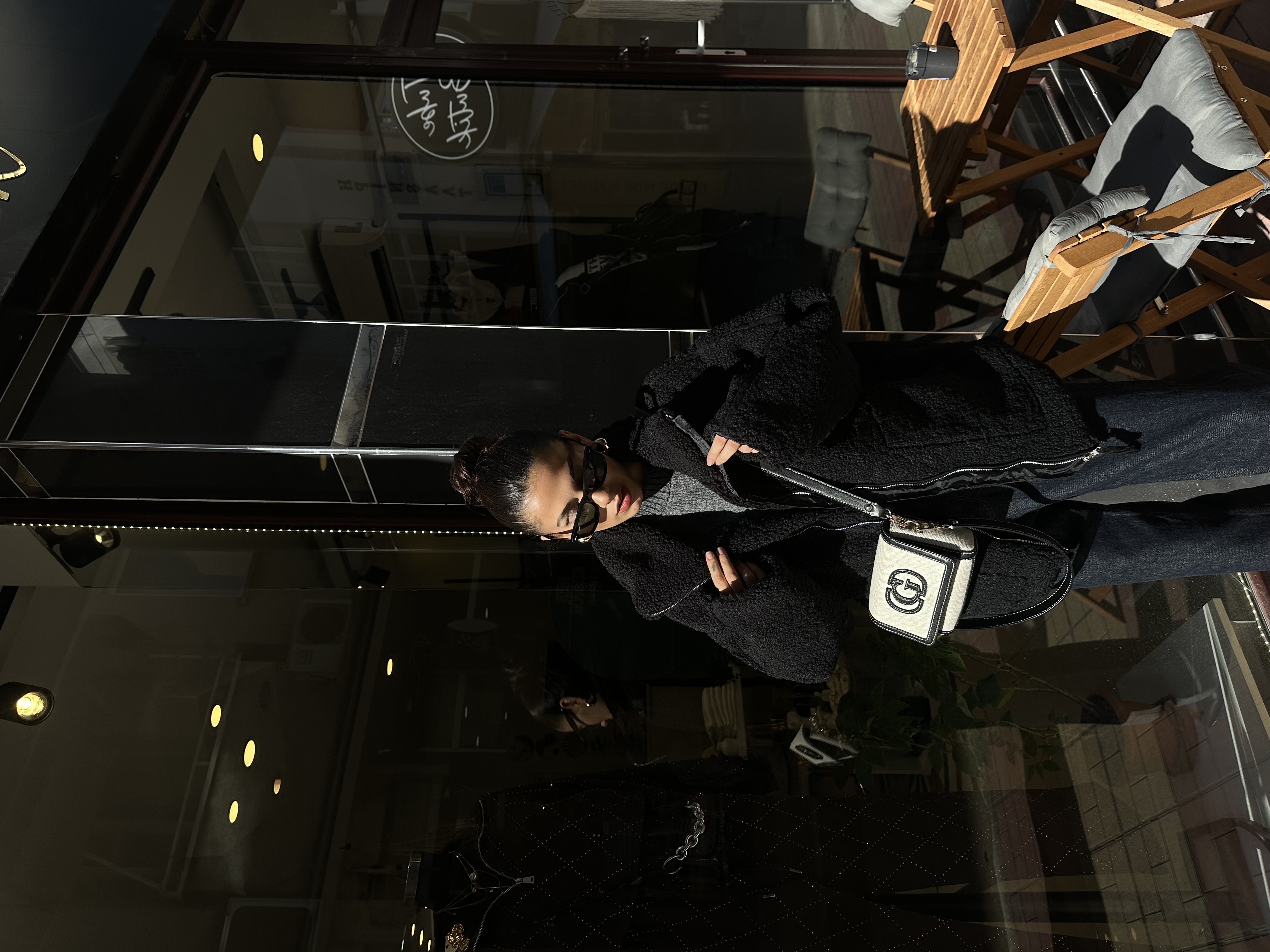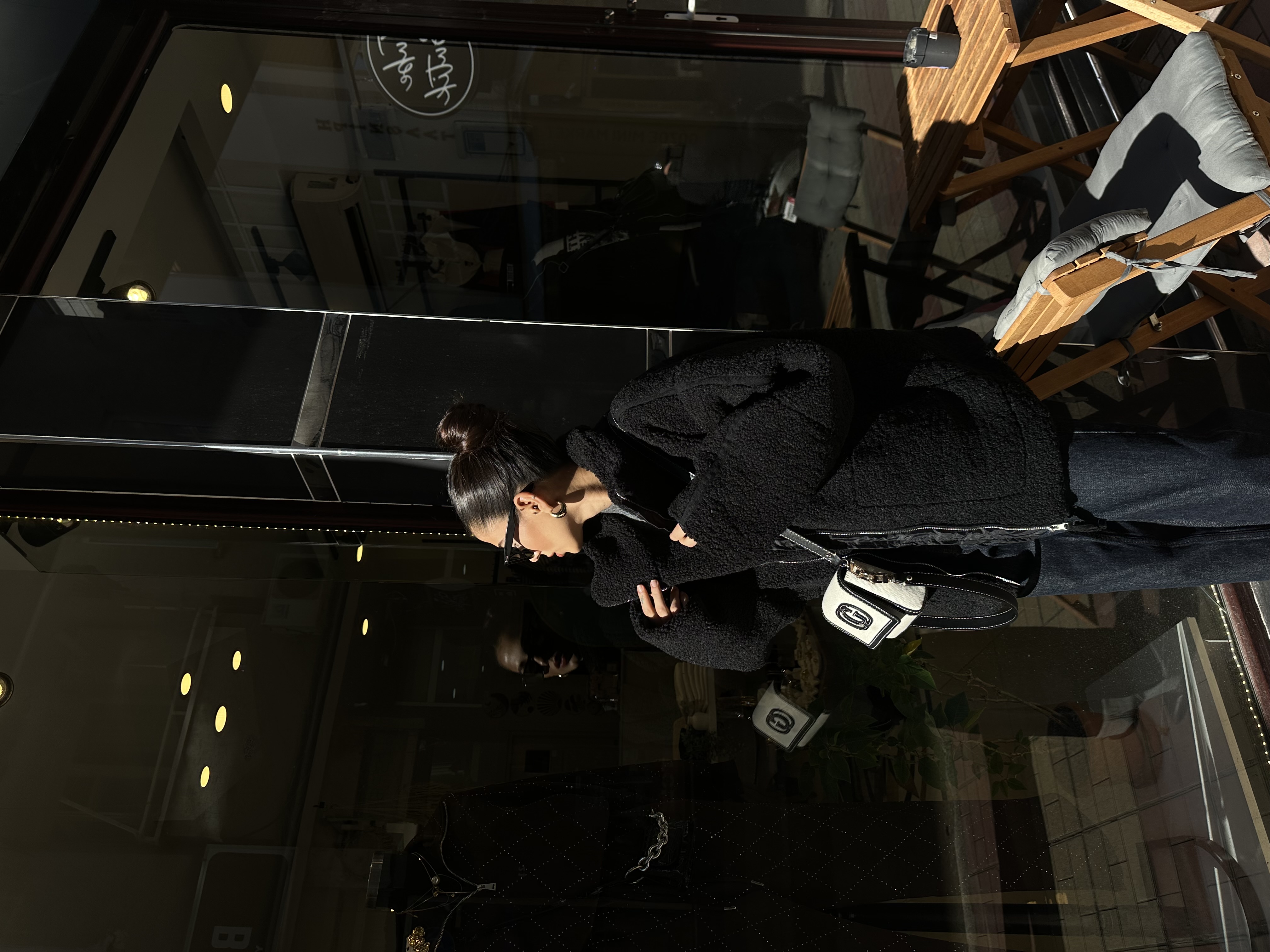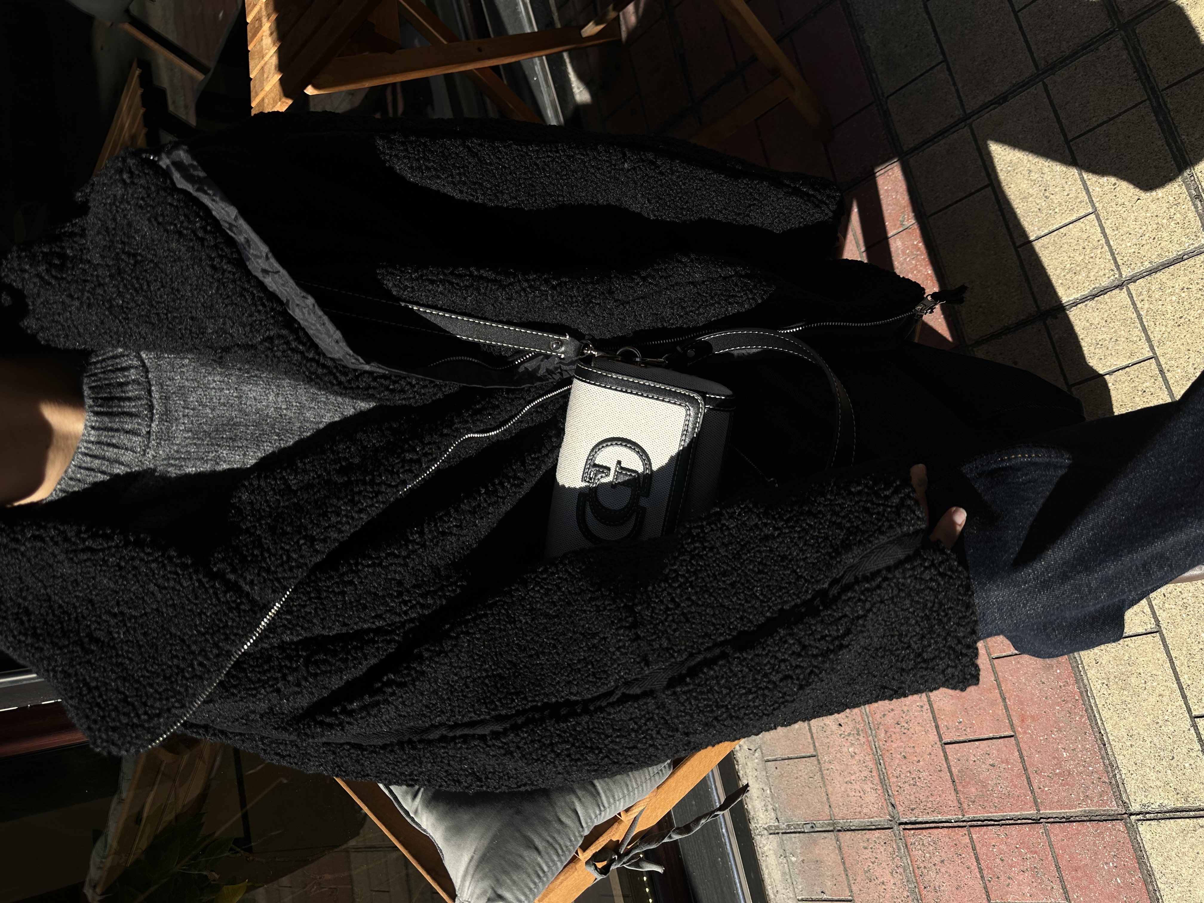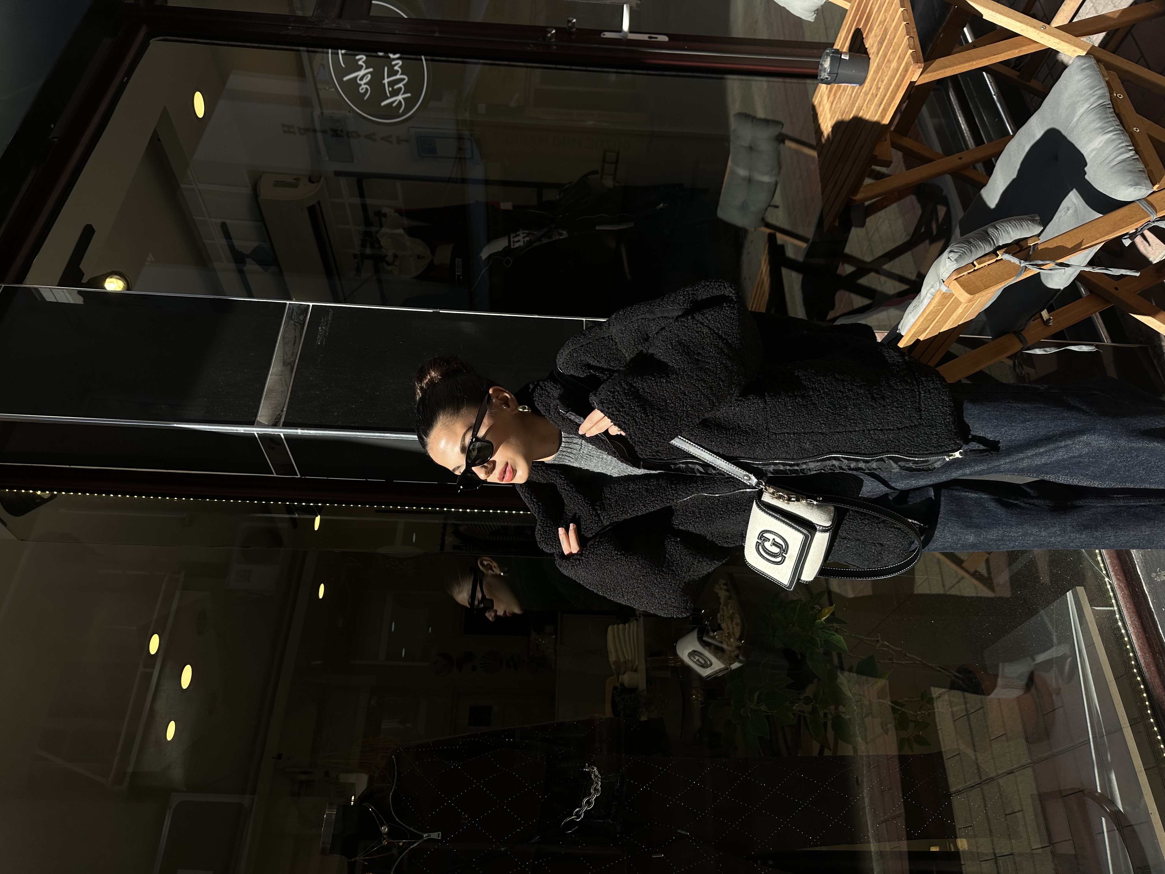 Siyah Çift Cepli Astarlı Peluş Mont