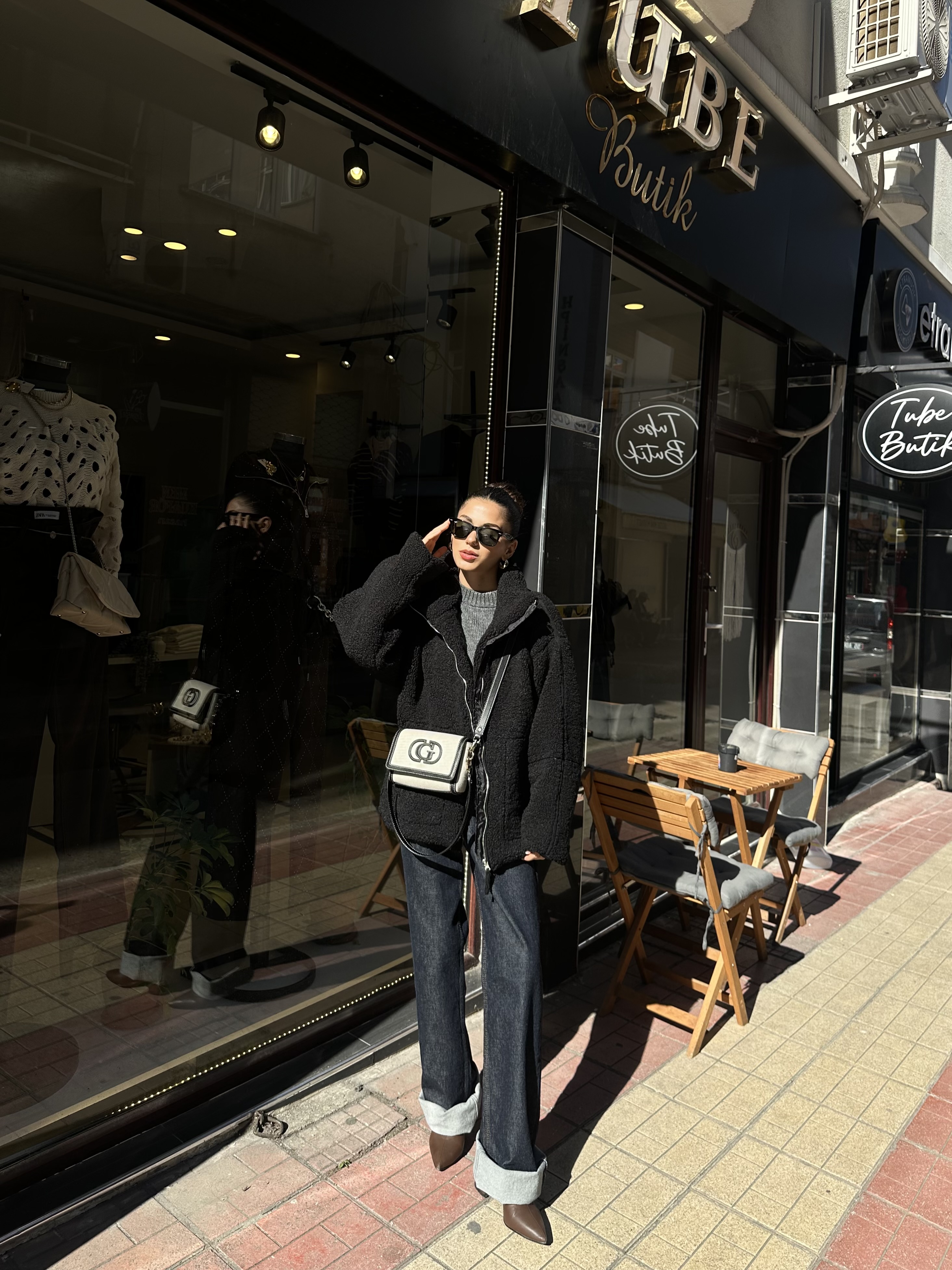 Si̇yah Çi̇ft Cepli̇ Astarlı Peluş Mont | Tube Butik