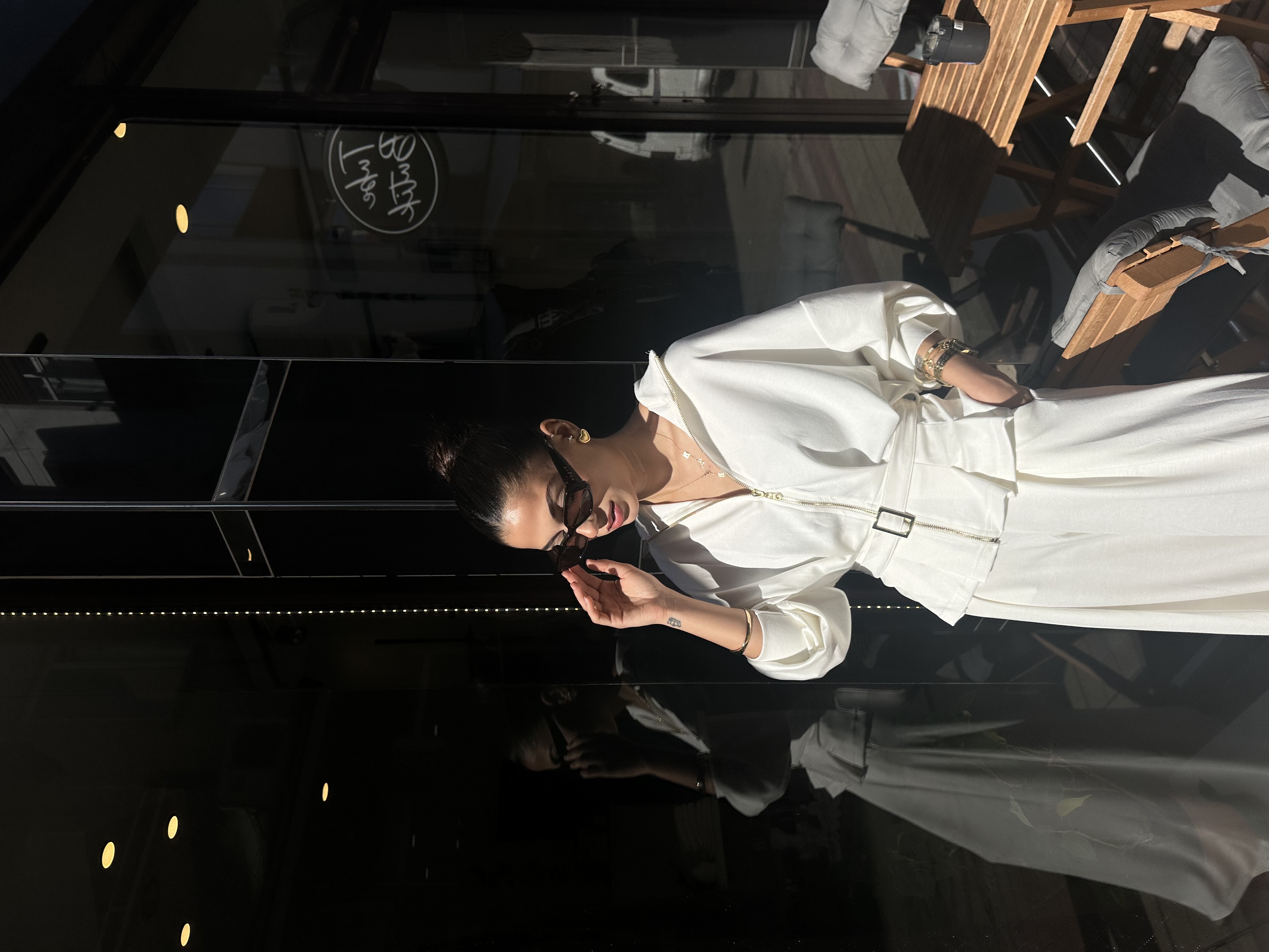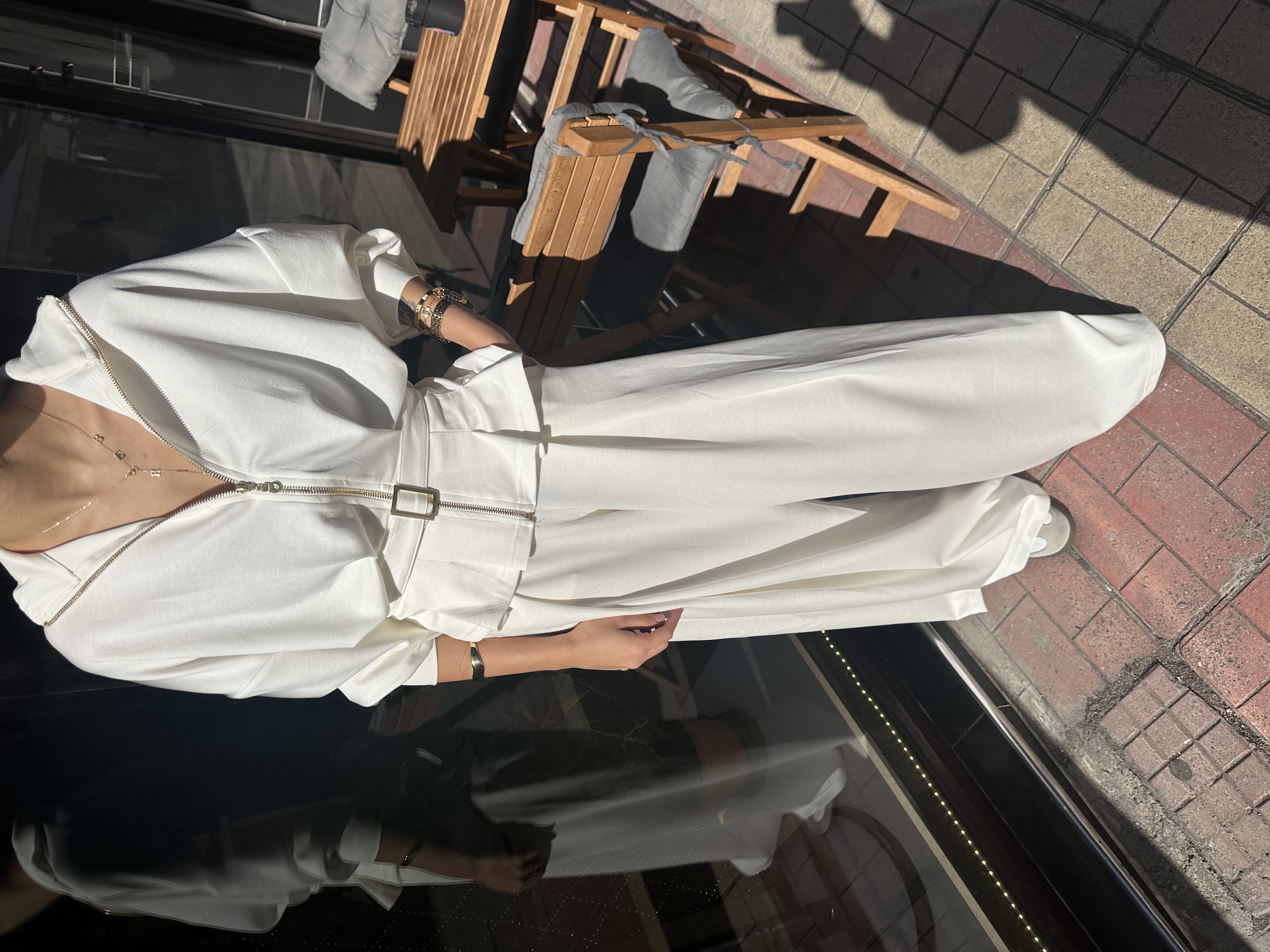 Kemer Detaylı Geniş Paça Pantolon Beyaz Takım