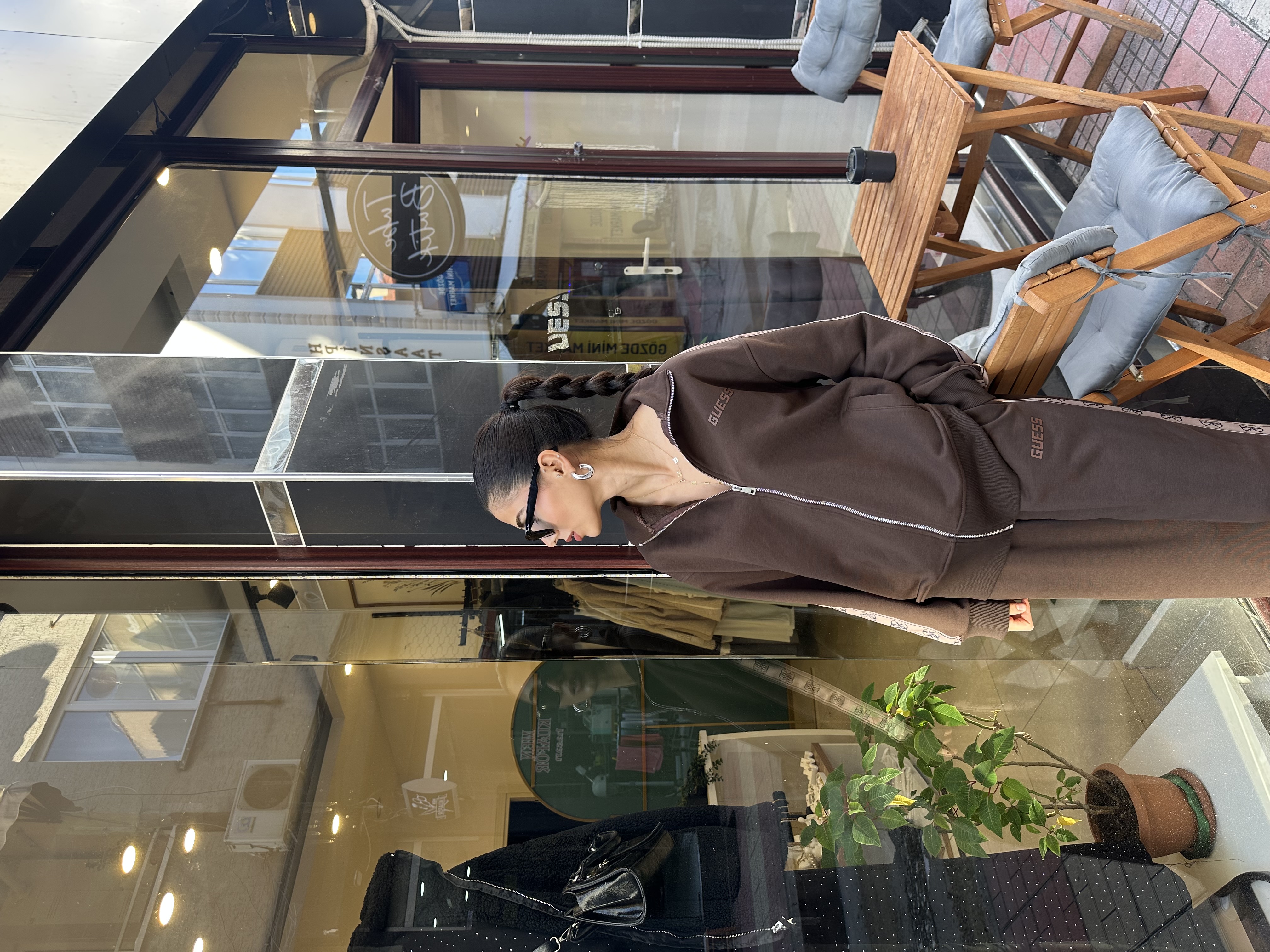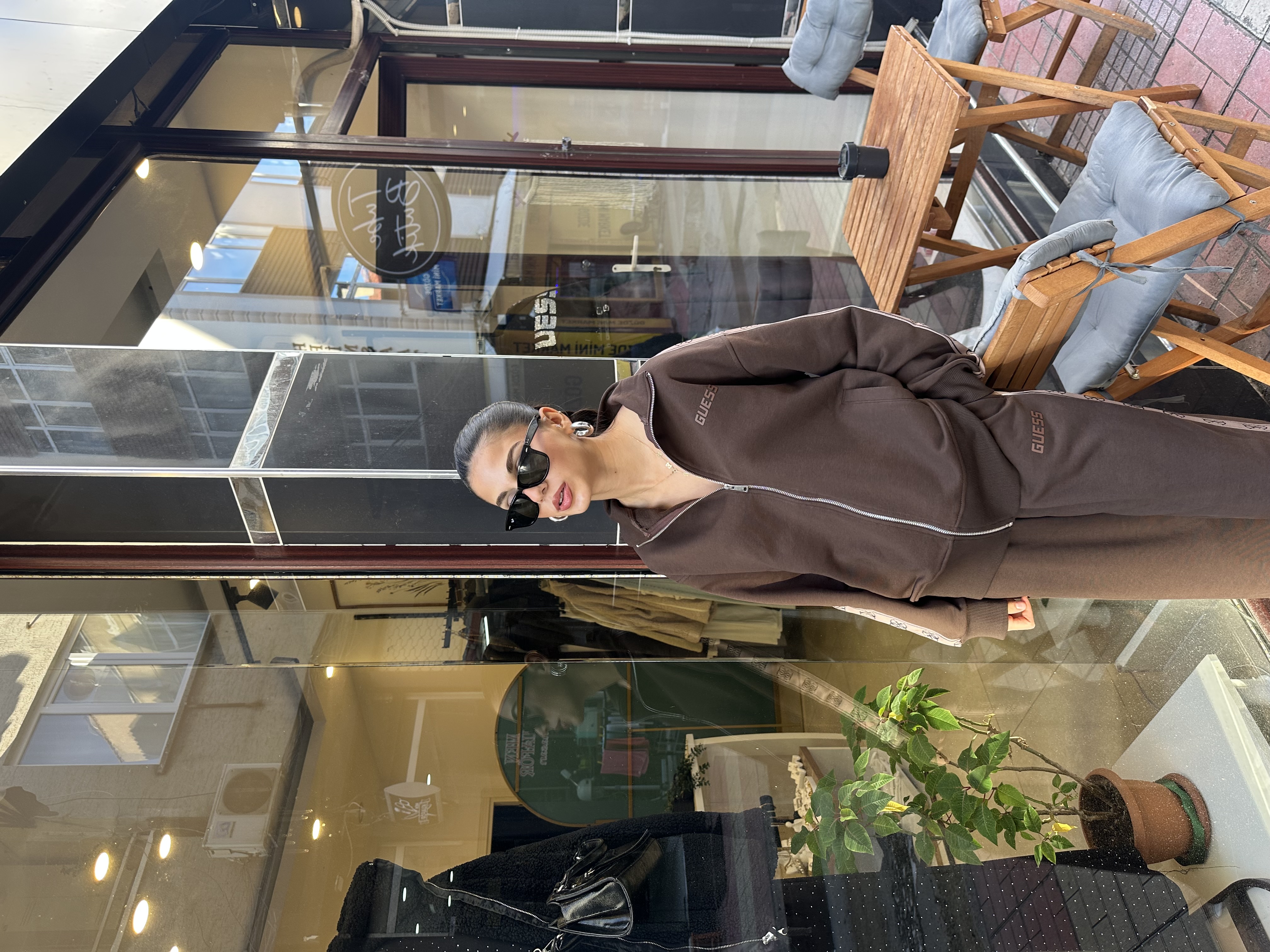 Premium Marka Model Yan Logo Şeritli Acı Kahve Hırka