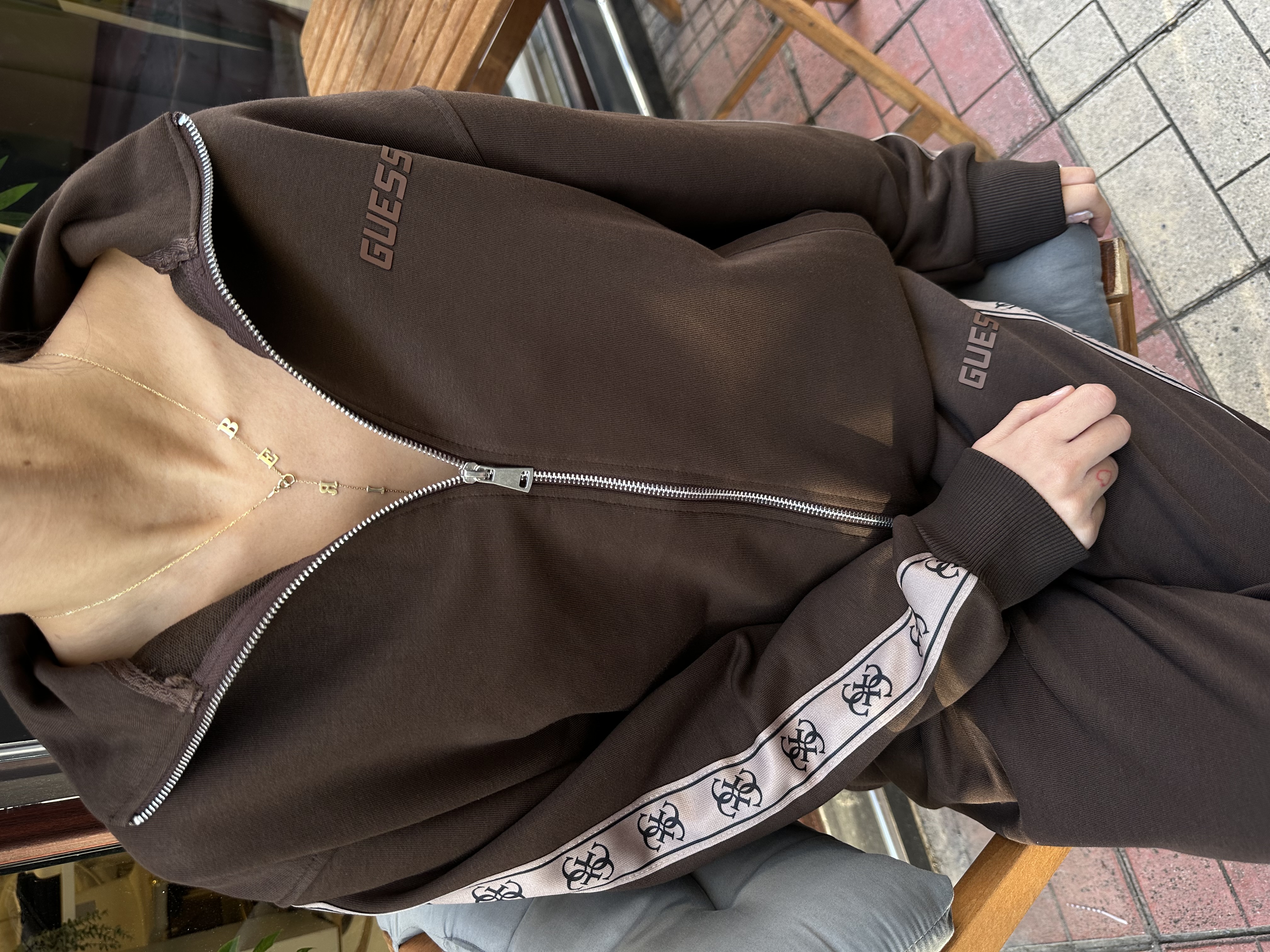 Premi̇um Marka Model Yan Logo Şeri̇tli̇ Acı Kahve Hırka | Tube Butik