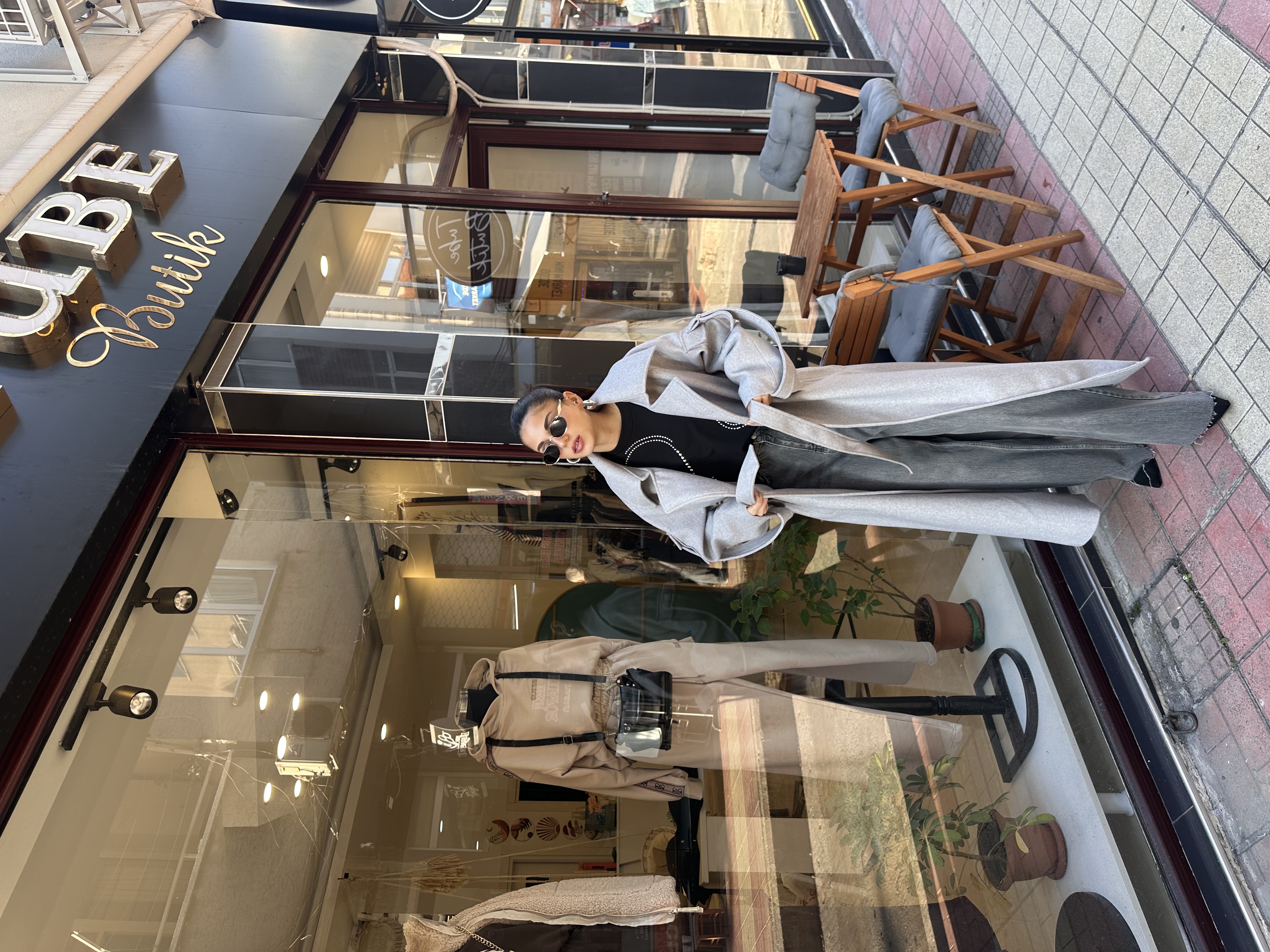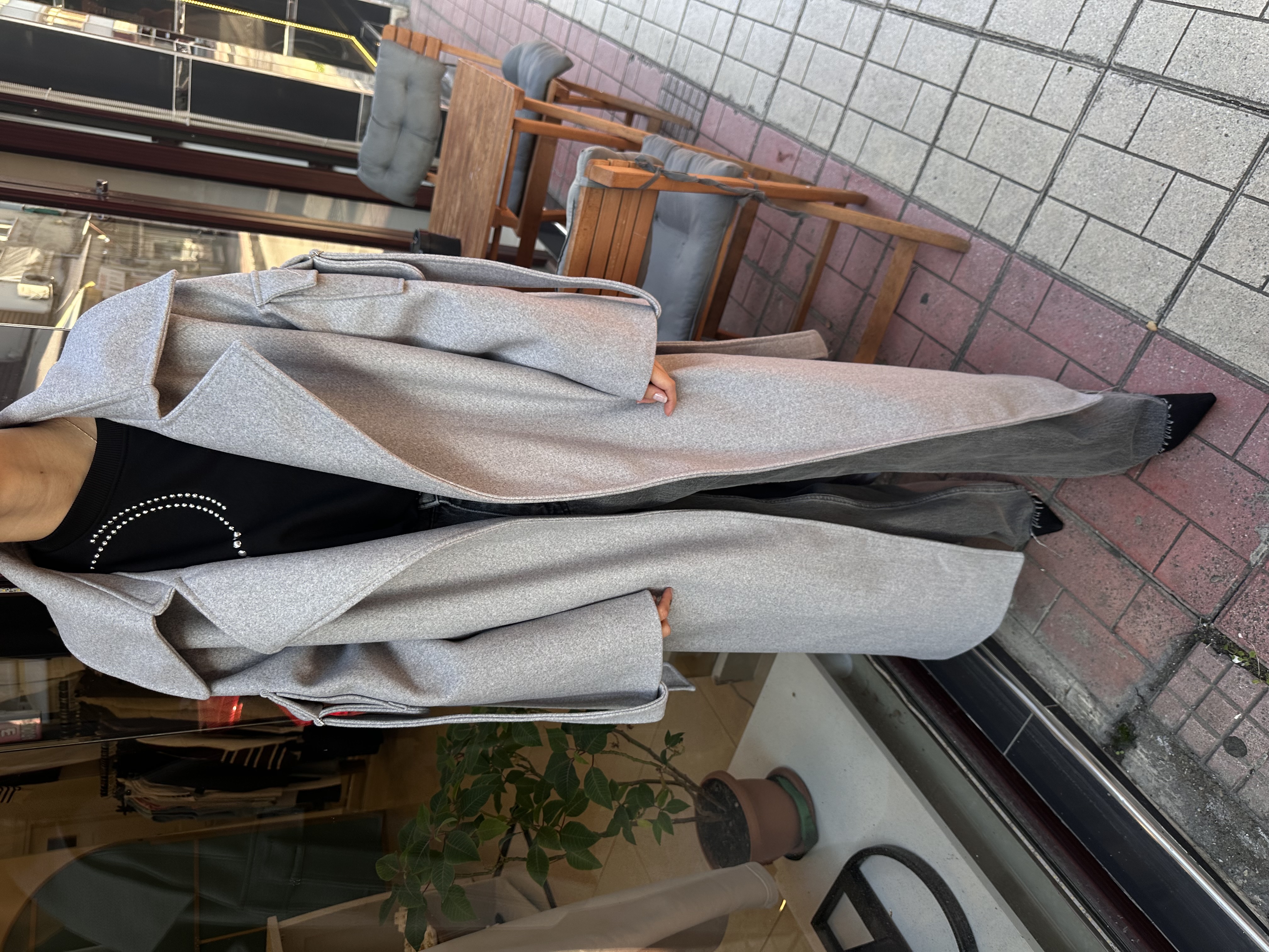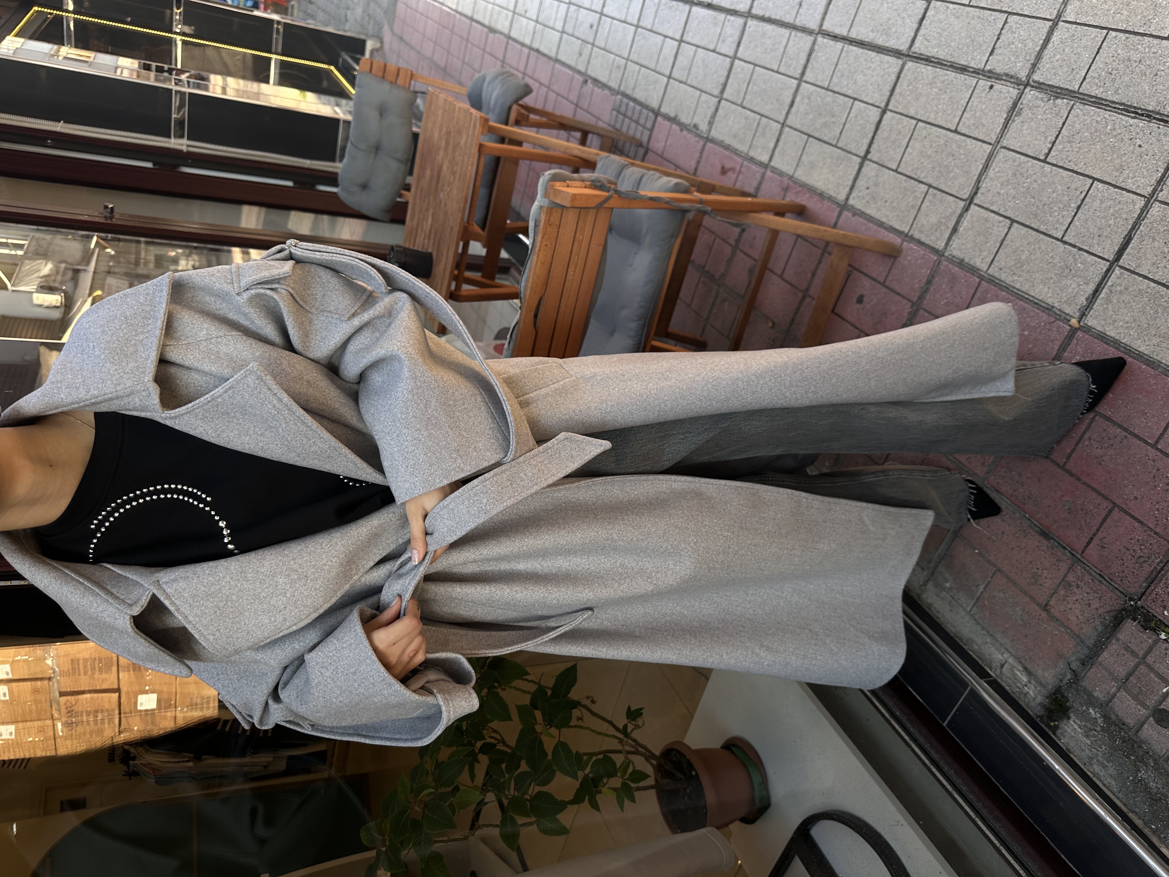 Premi̇um Astarlı Kuşaklı Kol Detaylı Açık Gri̇ Kaşe Kaban | Tube Butik