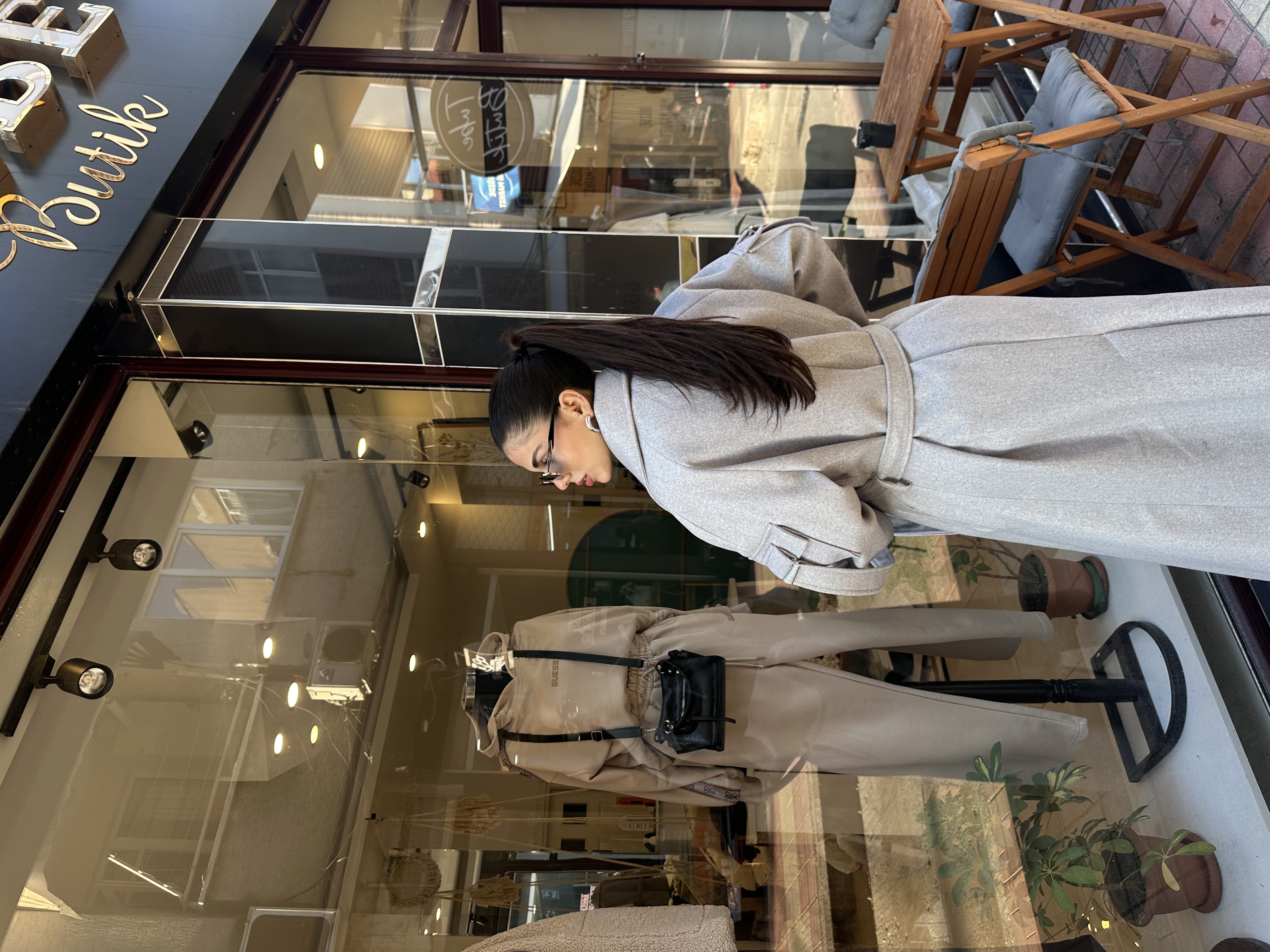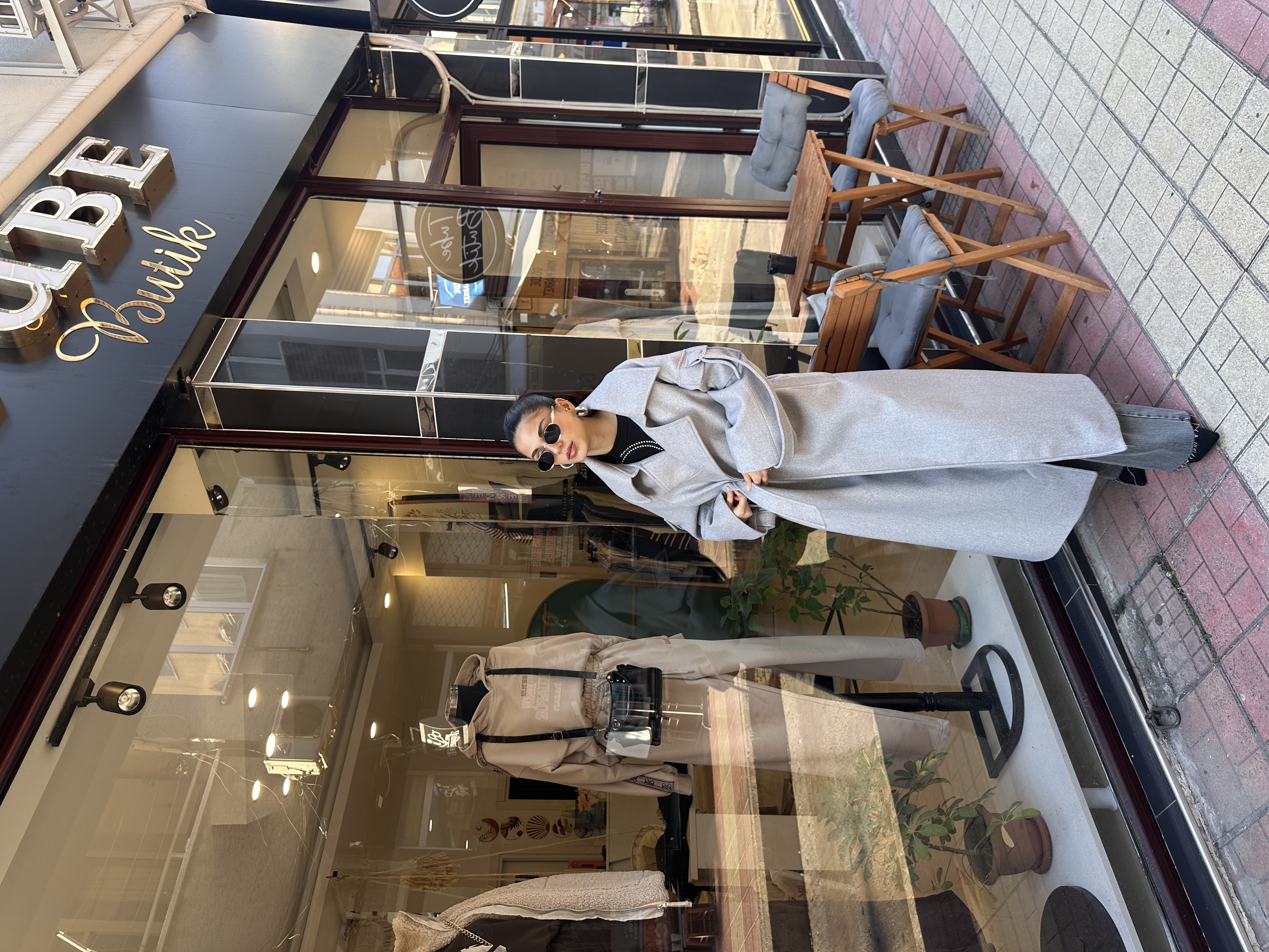 Premium Astarlı Kuşaklı Kol Detaylı Açık Gri Kaşe Kaban