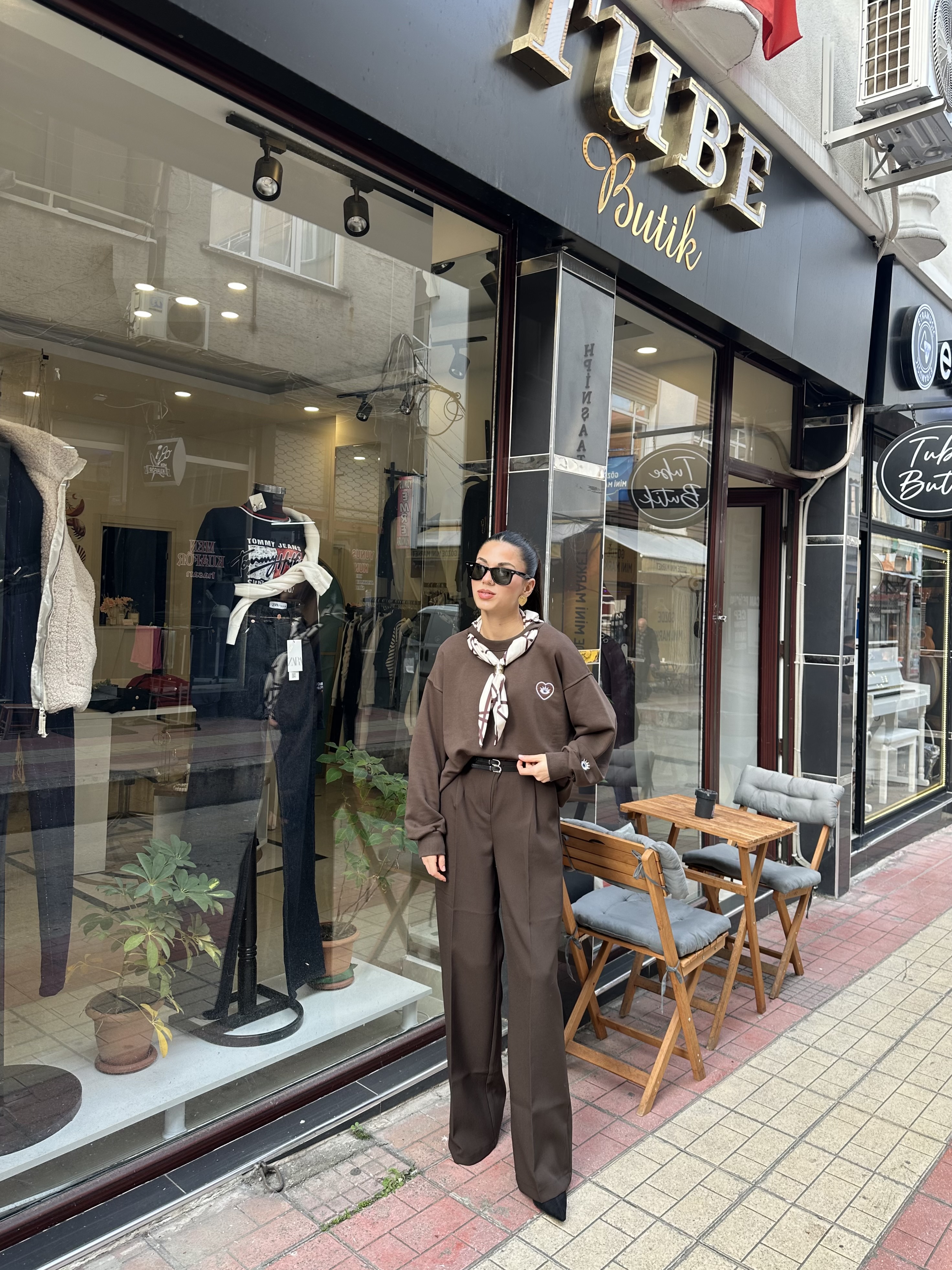 Çi̇ft Kemerli̇ Palazzo Model Acı Kahve Kumaş Pantolon | Tube Butik