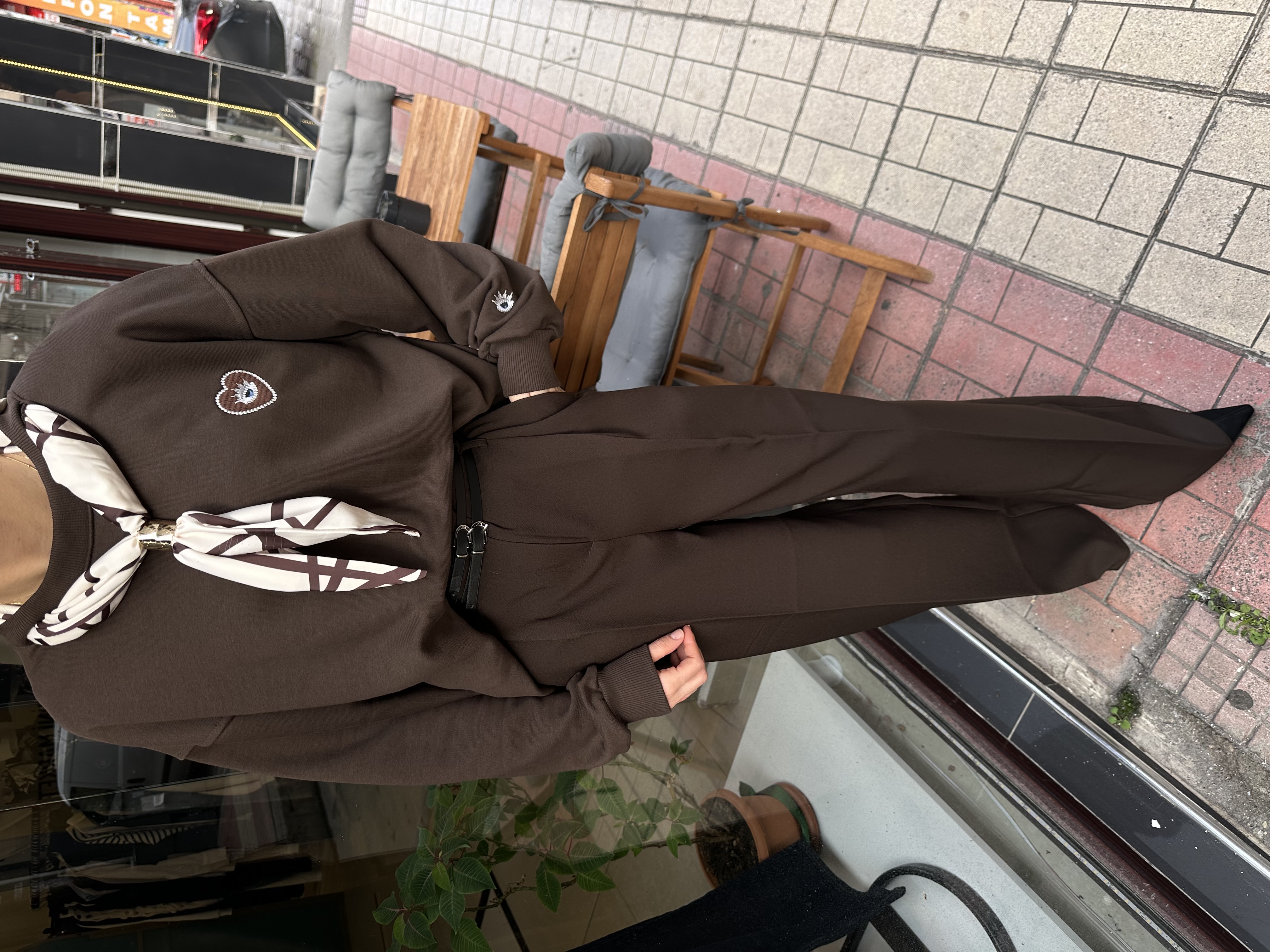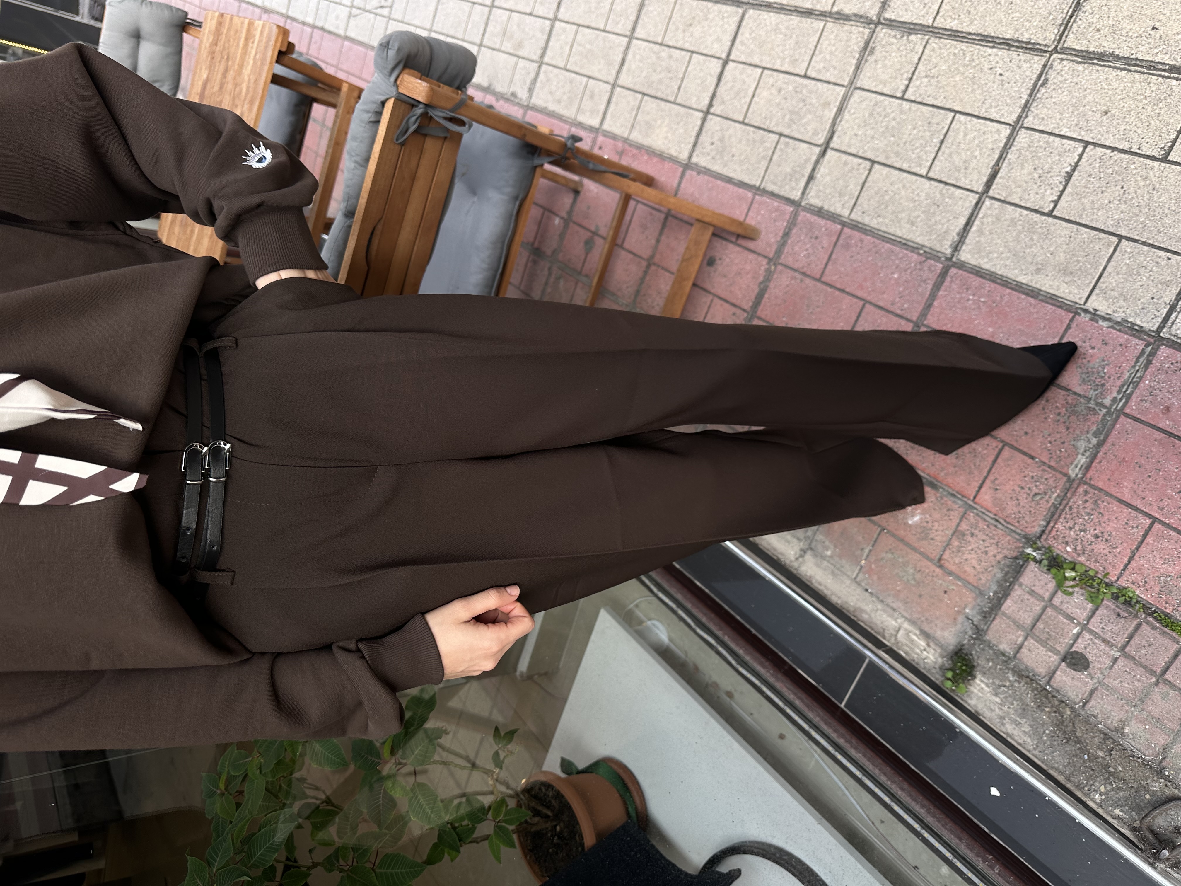 Çift Kemerli Palazzo Model Acı Kahve Kumaş Pantolon