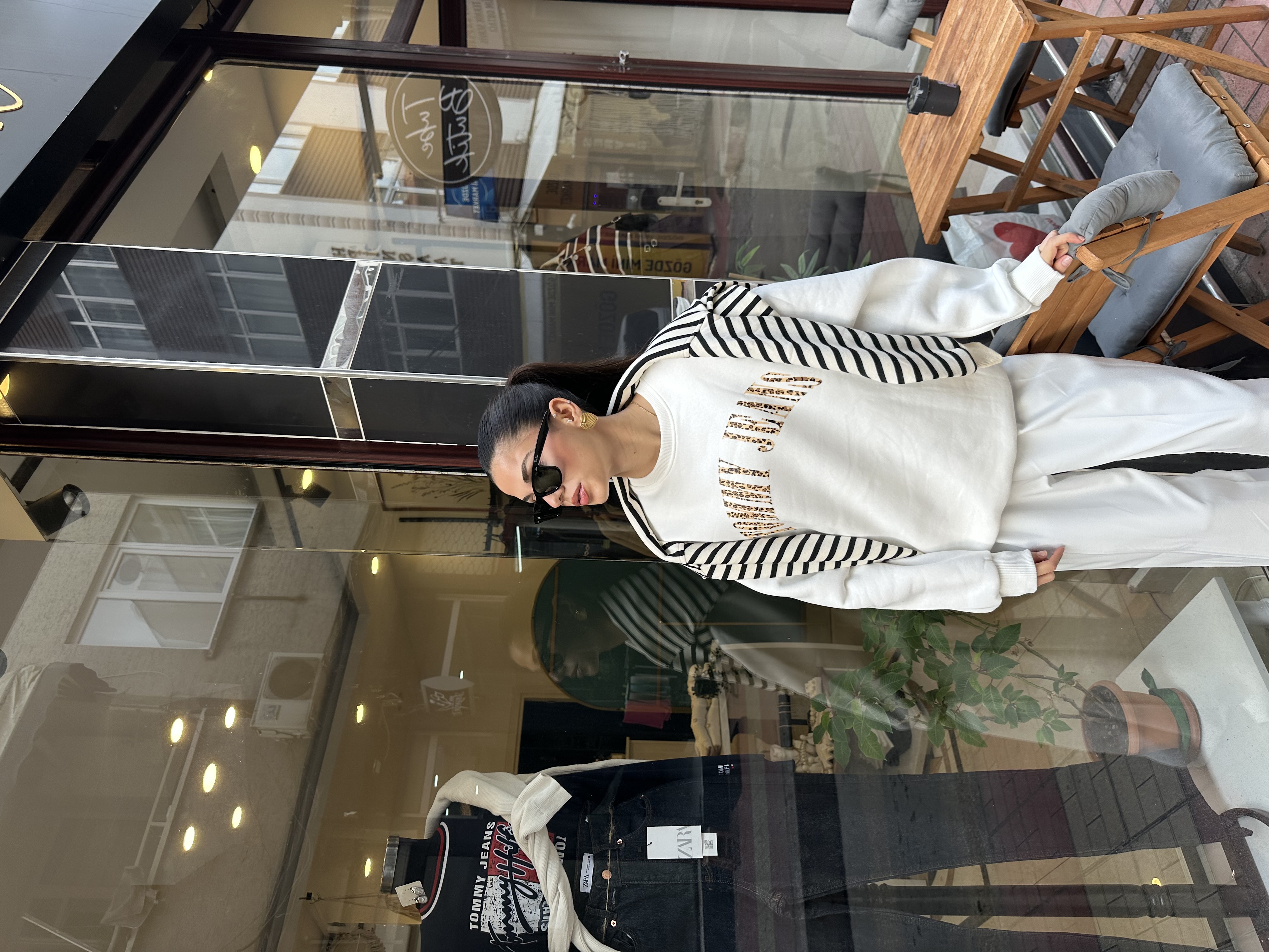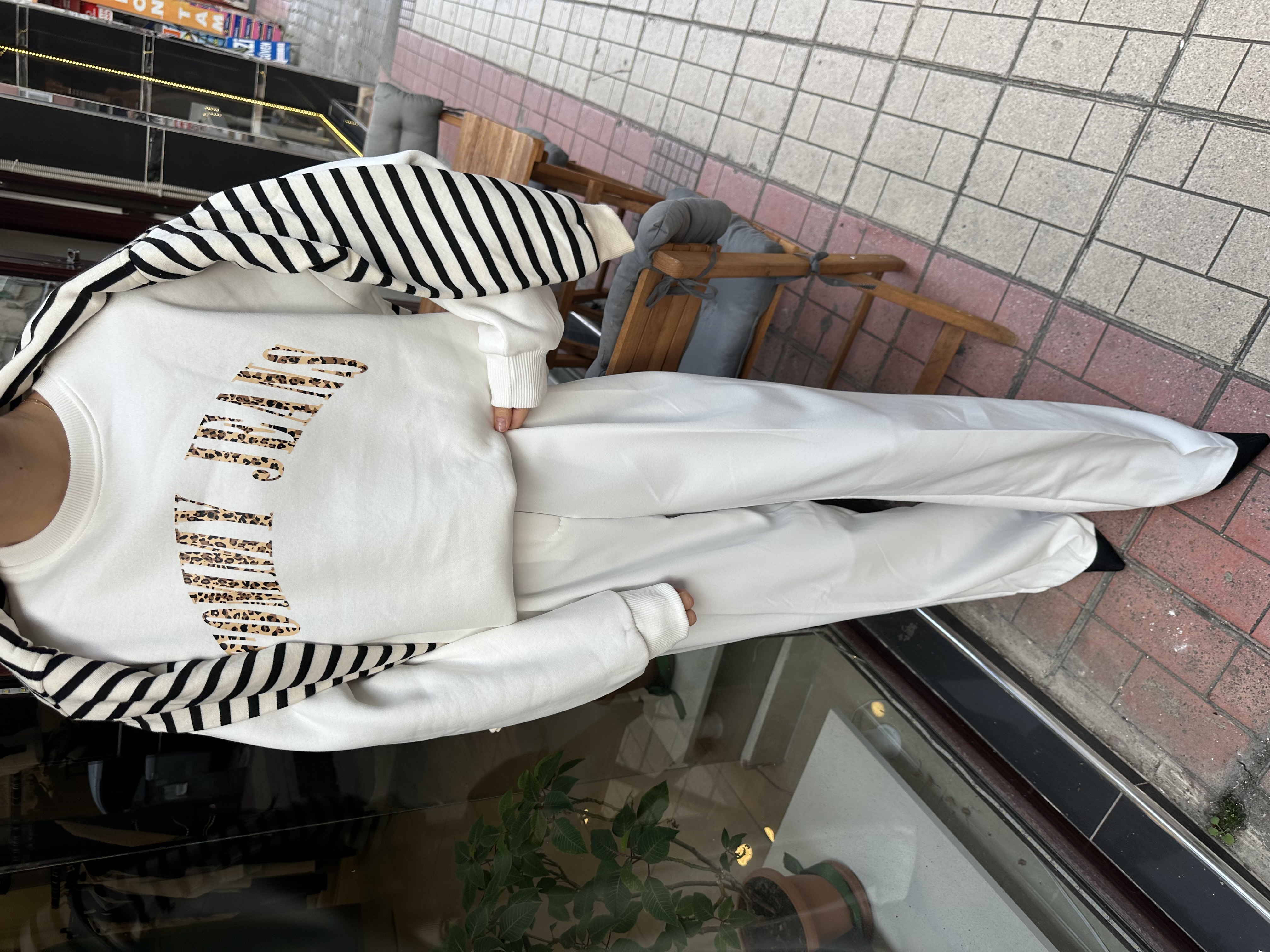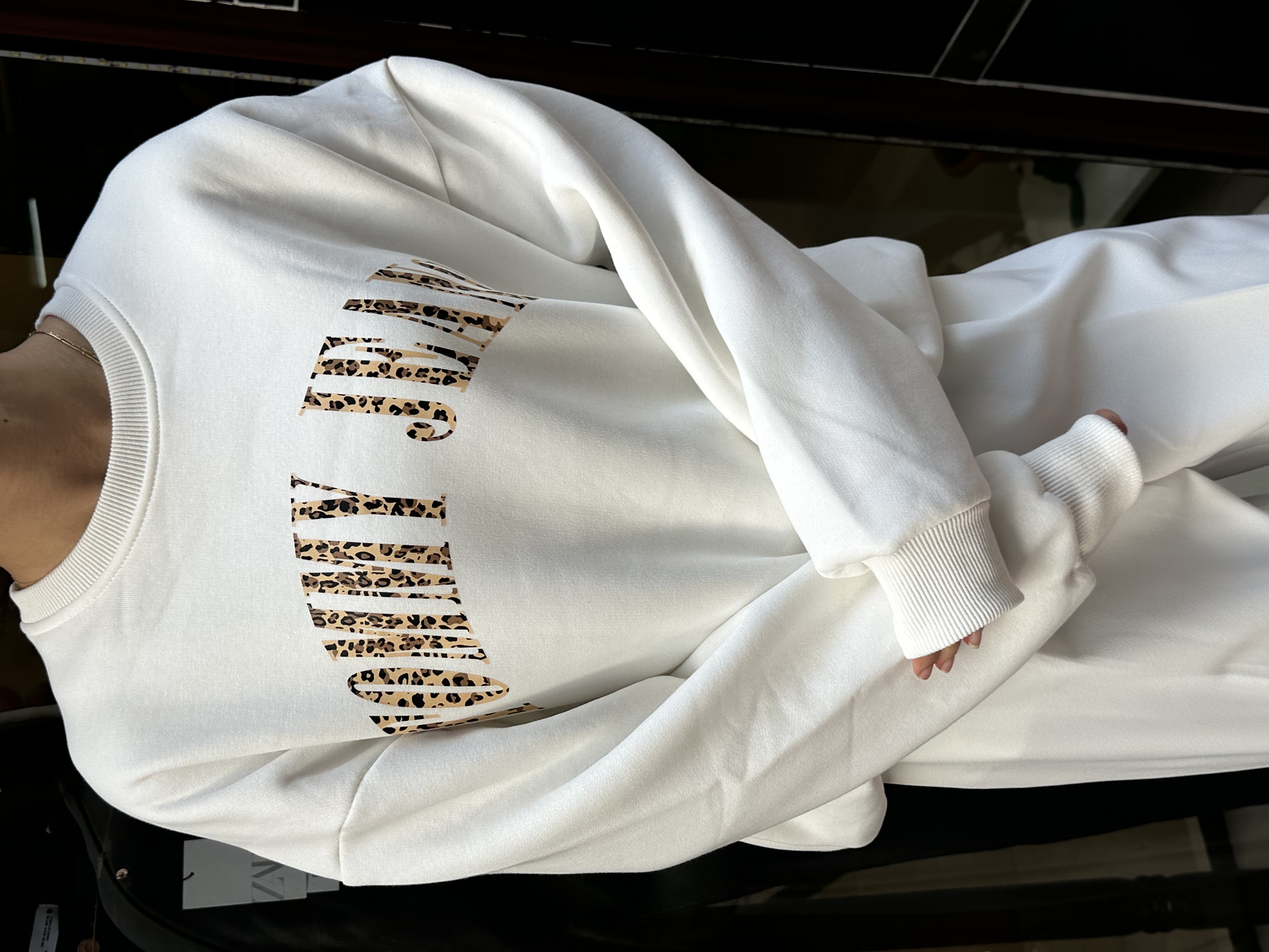 Marka Model Şardonlu Leopar İşlemeli Beyaz Sweatshirt