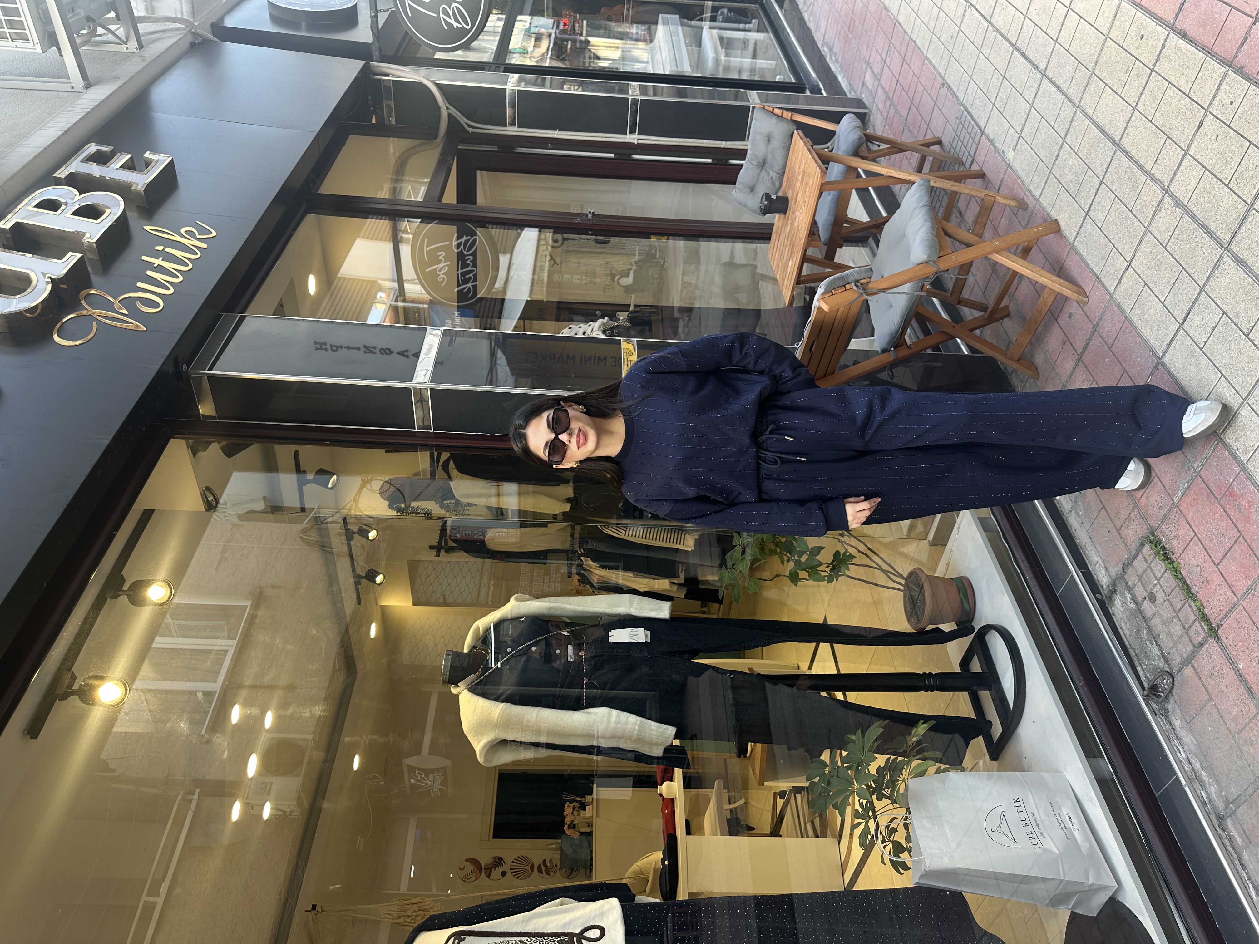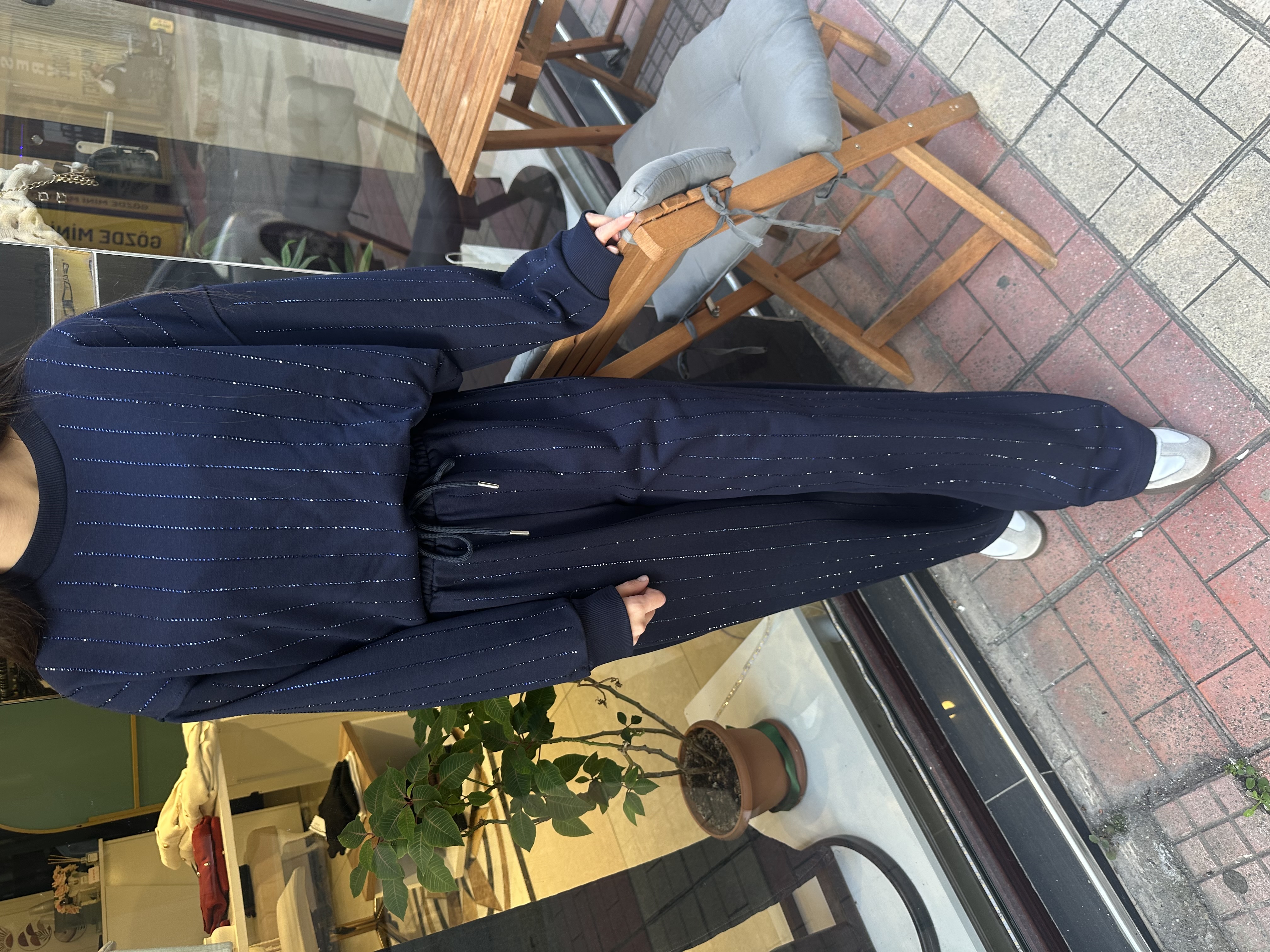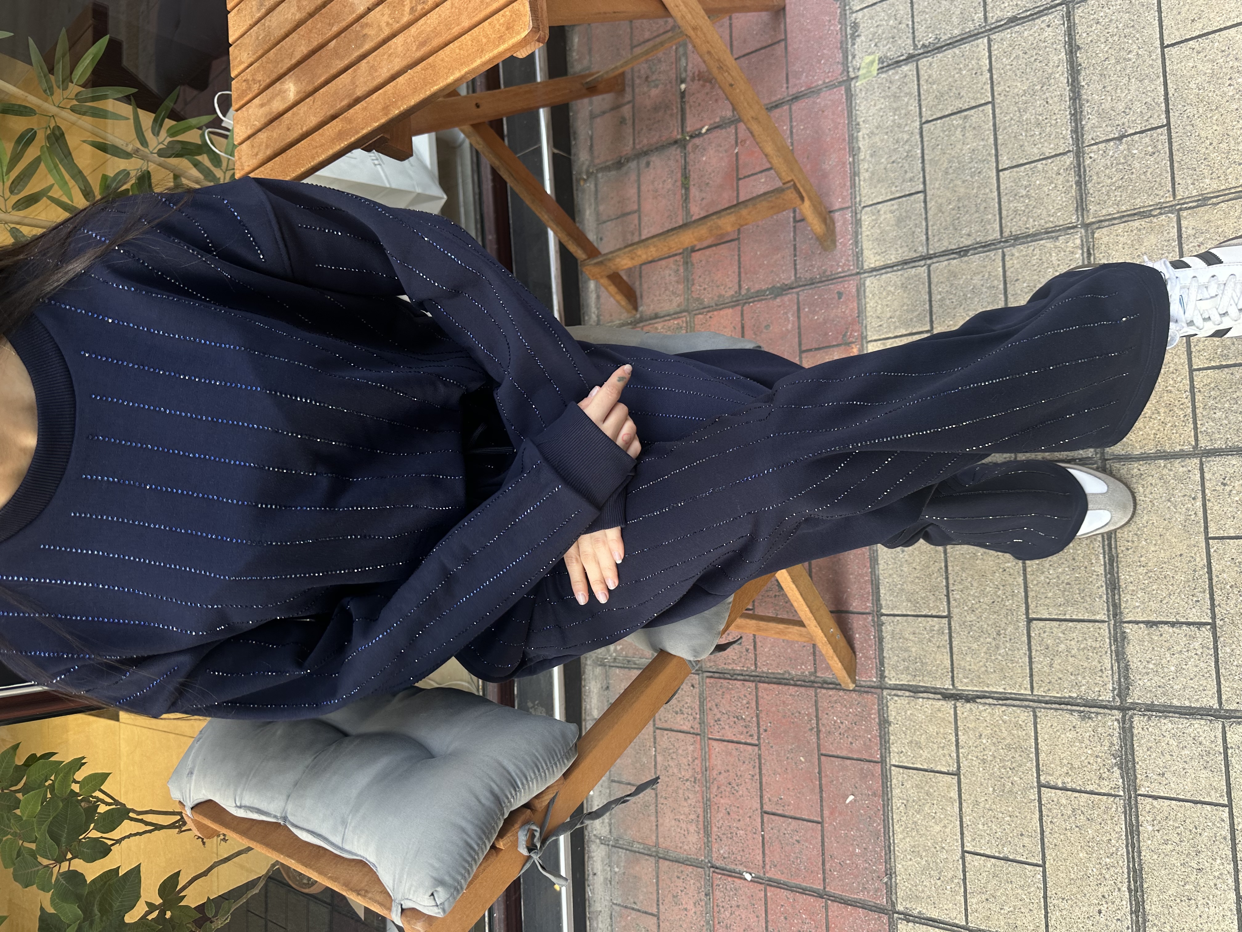 Luxe Çizgi Taş İşlemeli Lacivert Takım