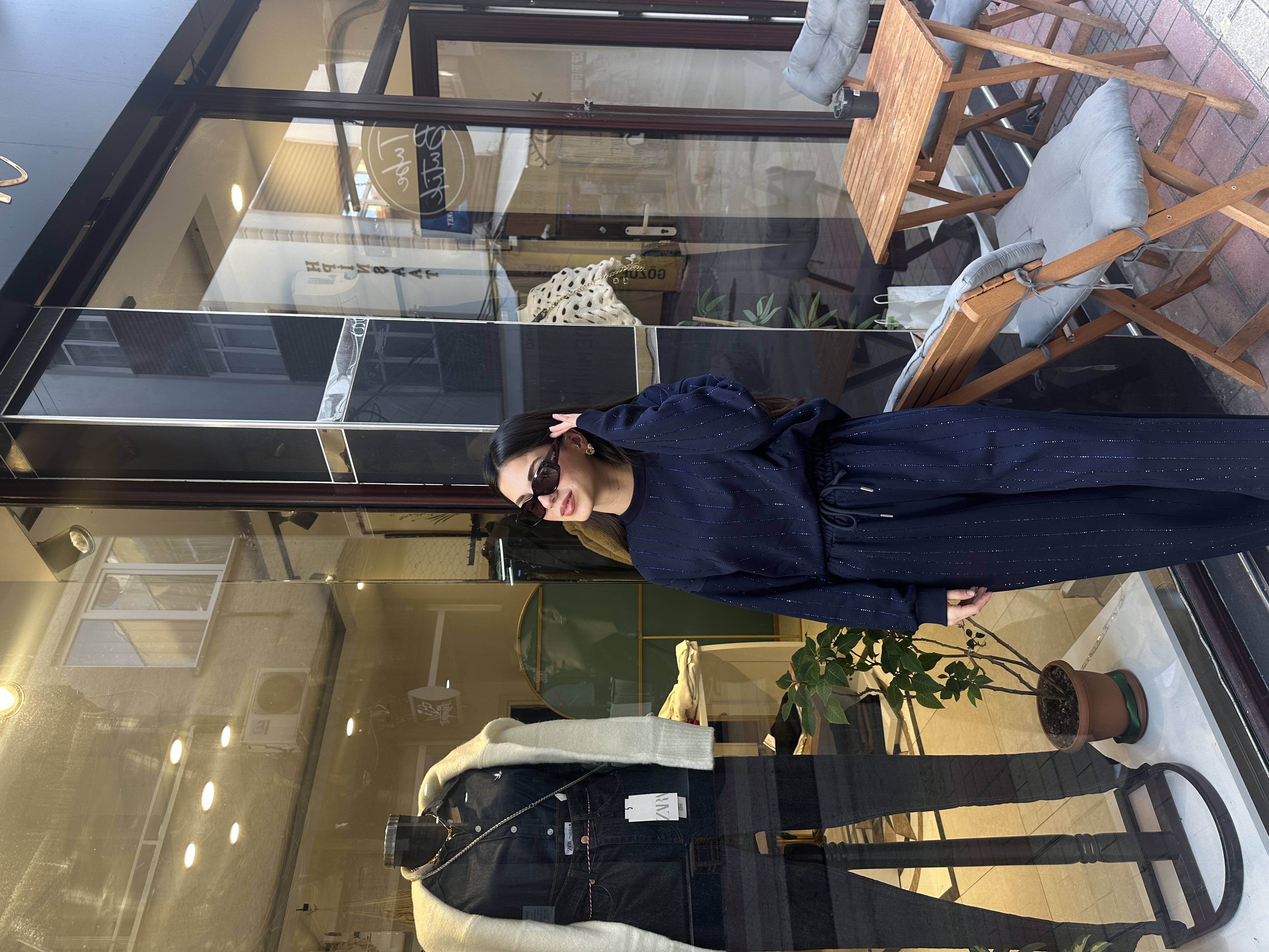 Luxe Çi̇zgi̇ Taş İşlemeli̇ Laci̇vert Takım | Tube Butik