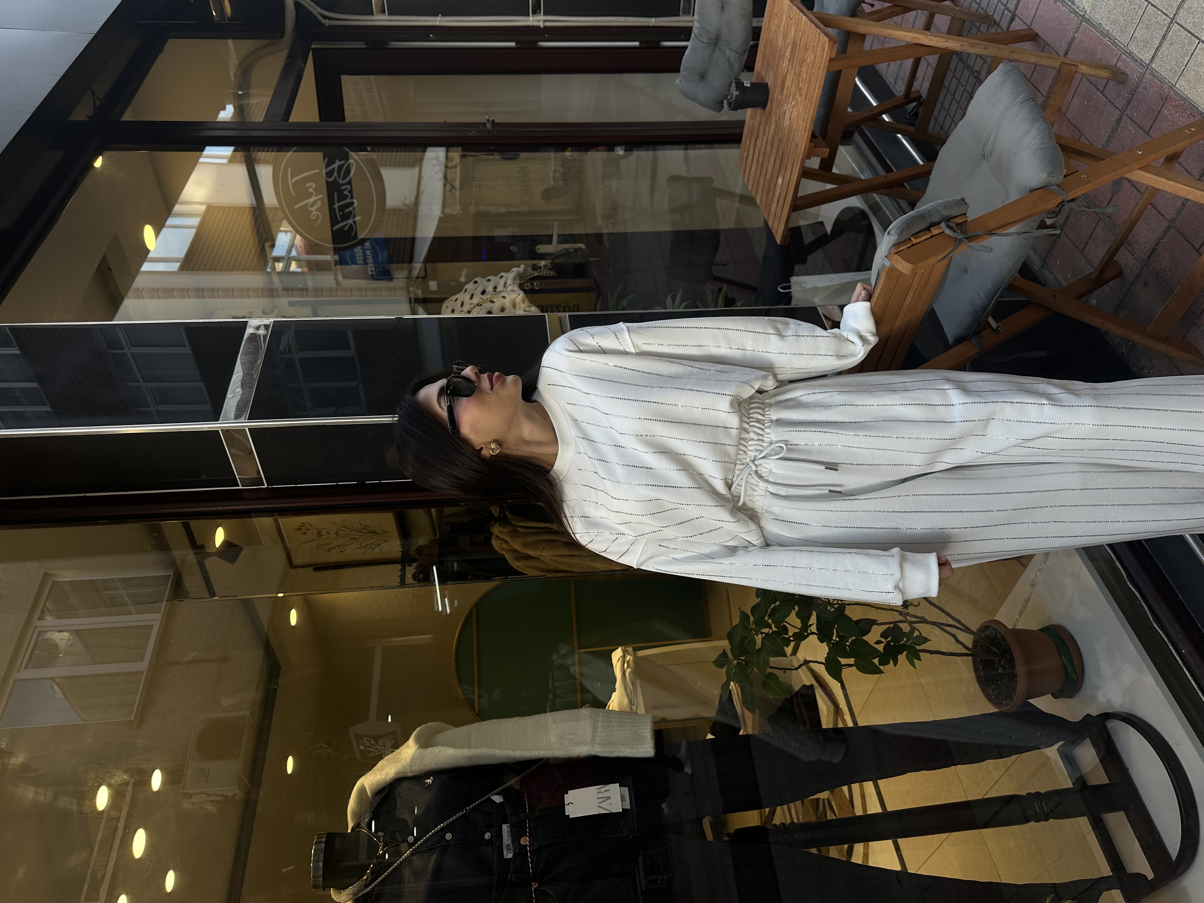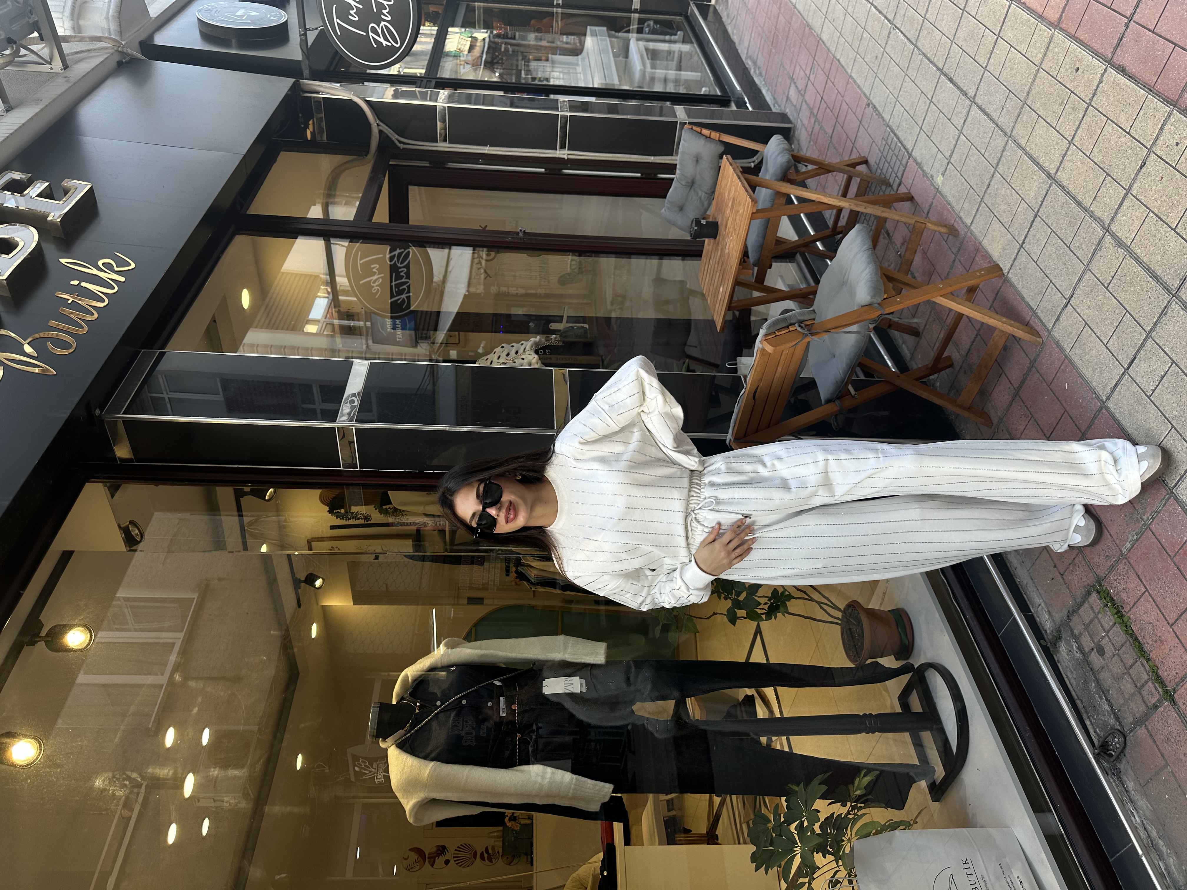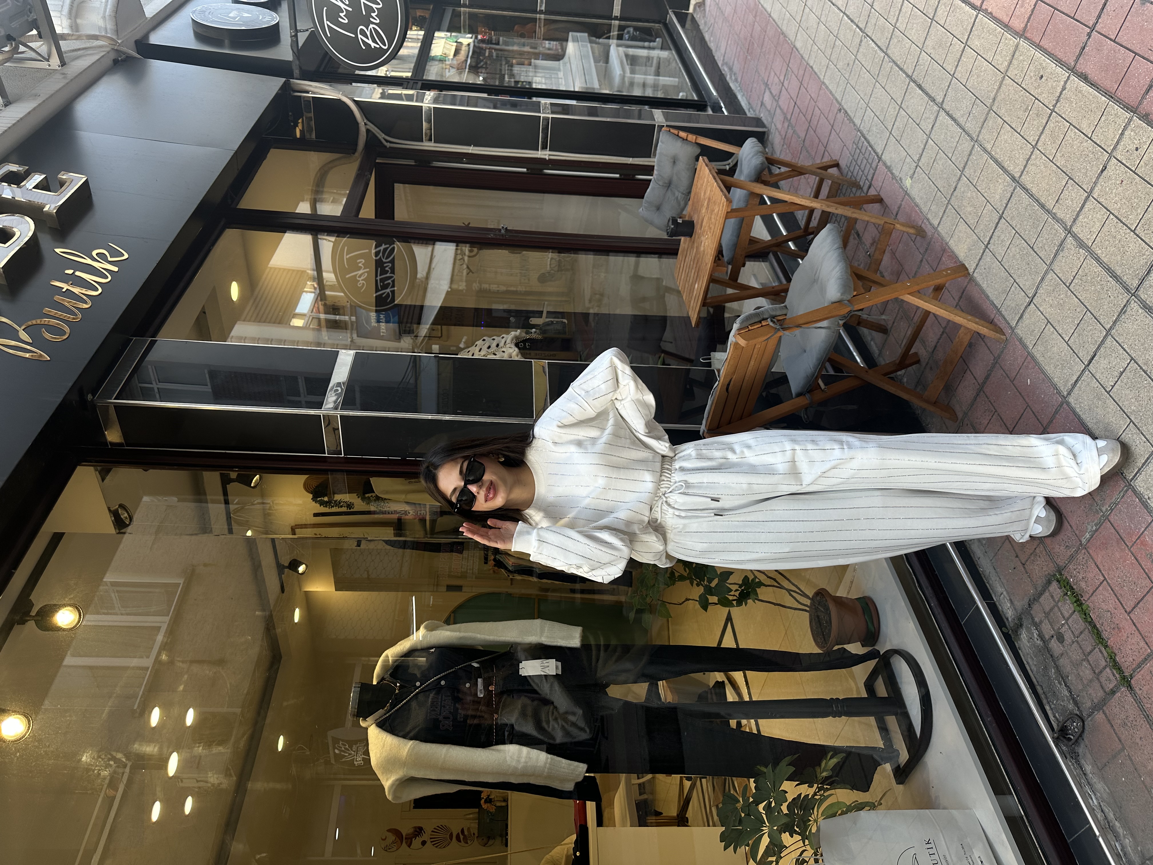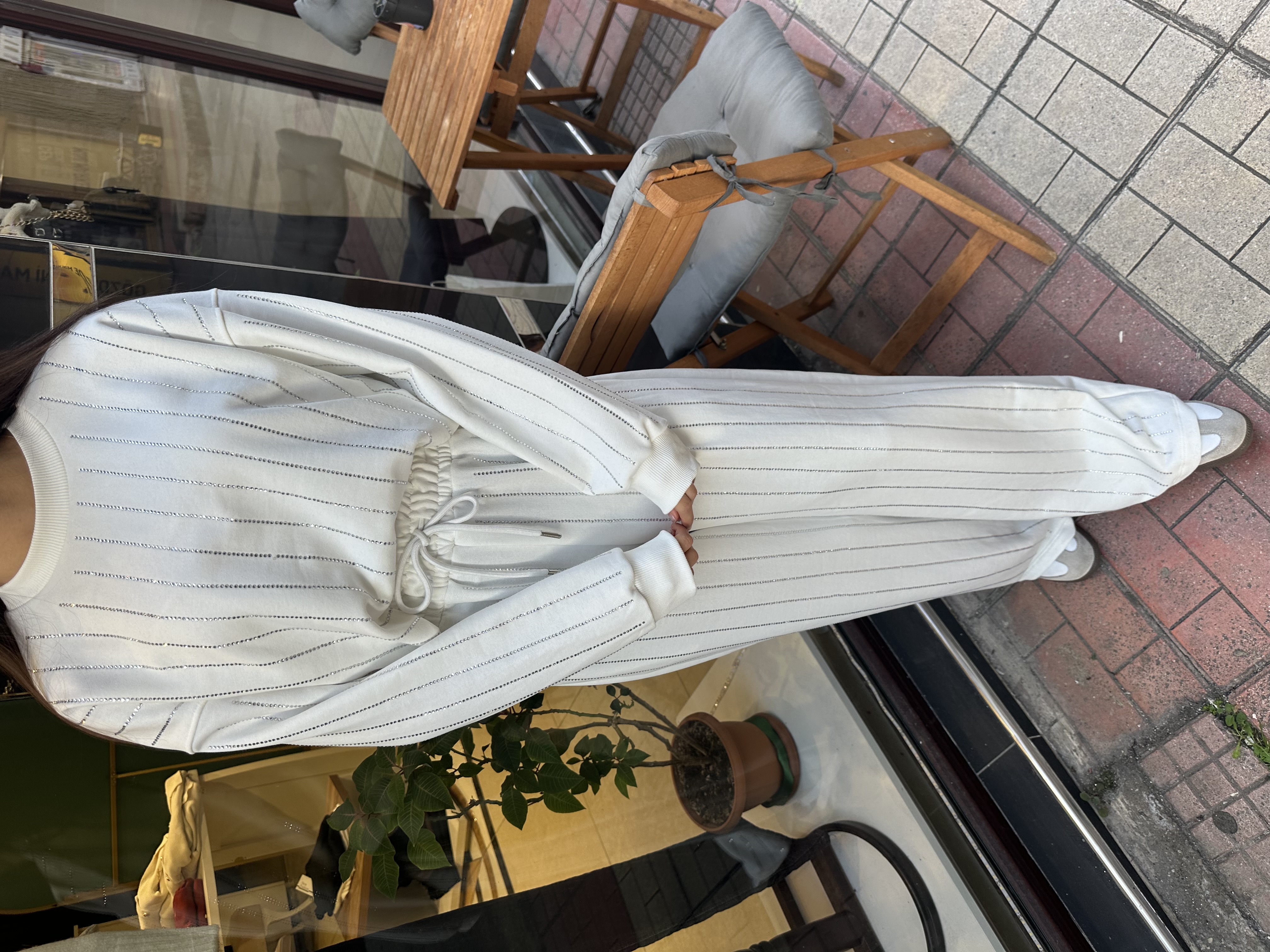 Luxe Çi̇zgi̇ Taş İşlemeli̇ Beyaz Takım | Tube Butik