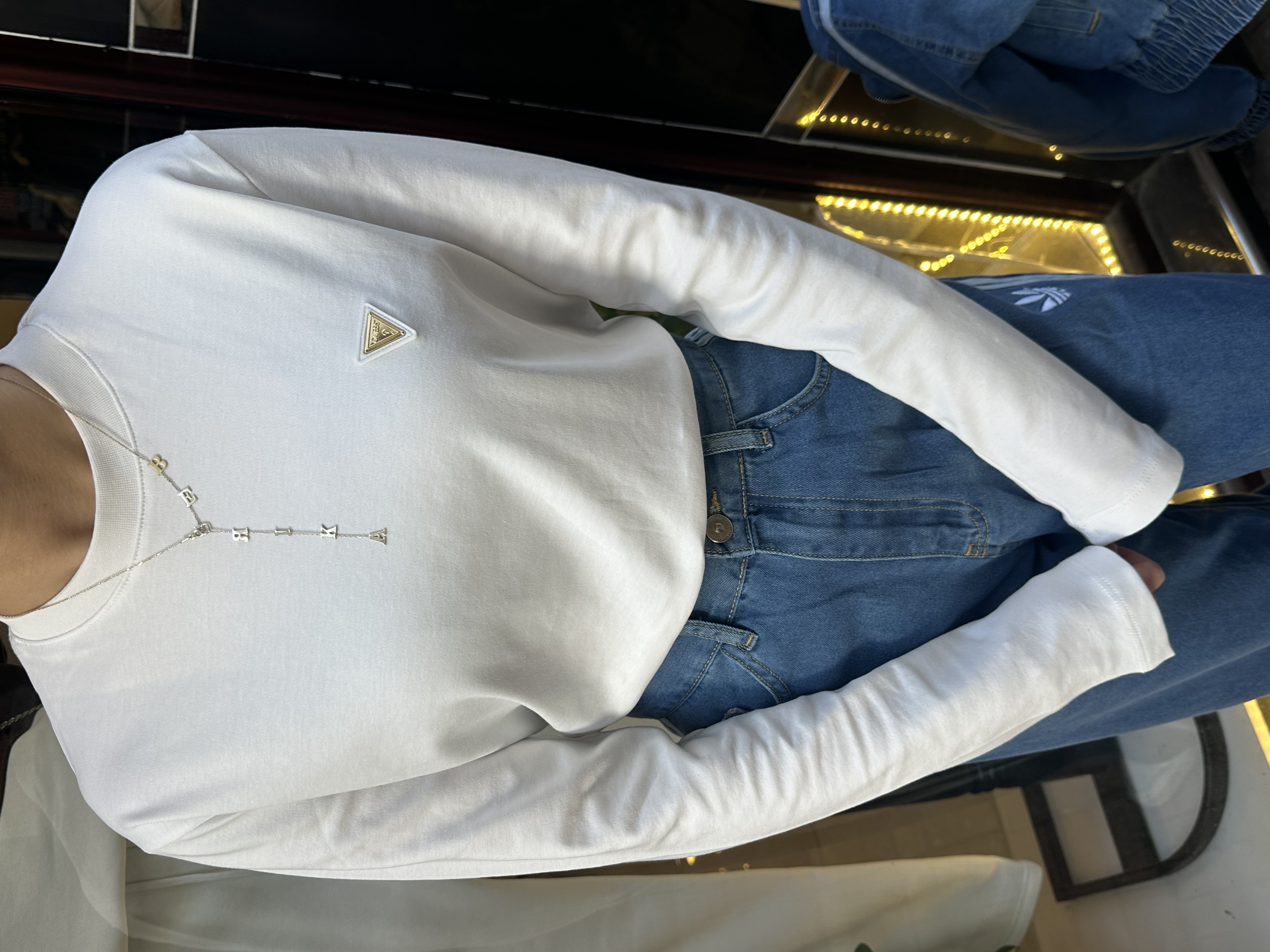 Marka Model Logolu Etiketli Beyaz Basic Bluz