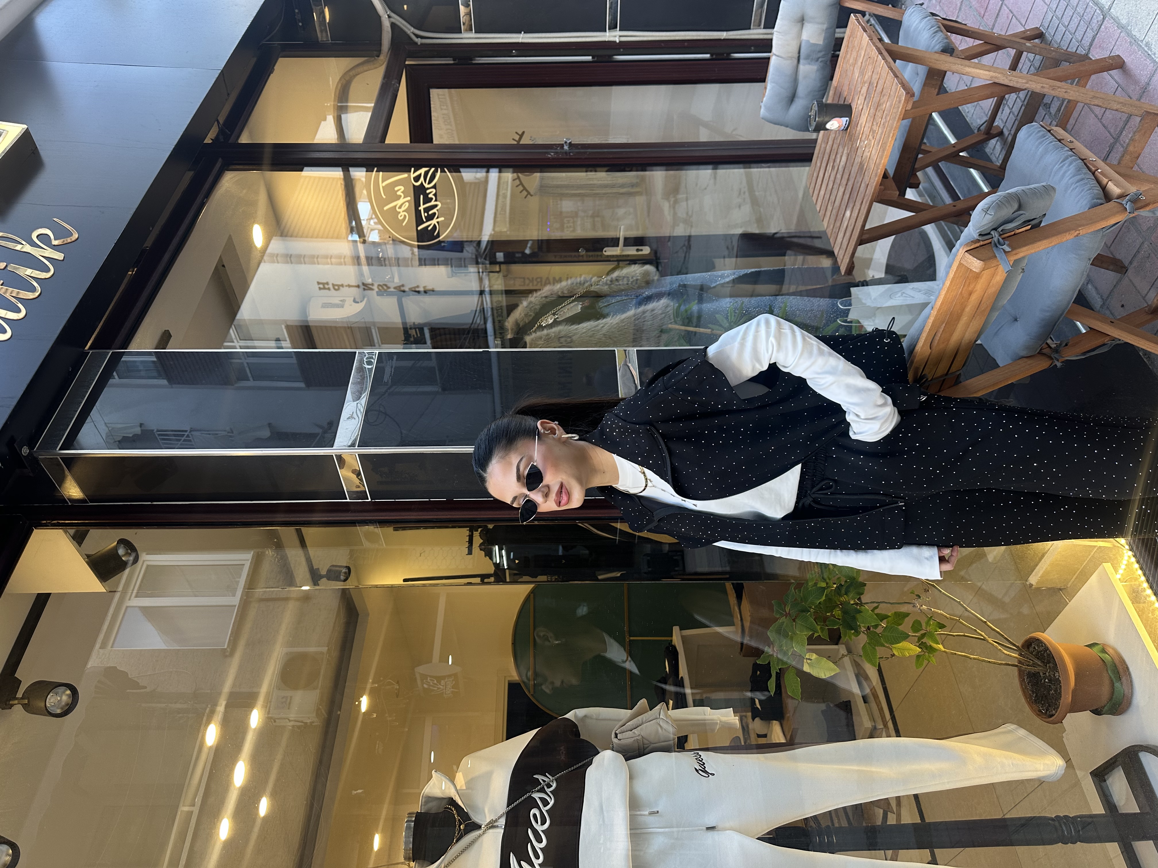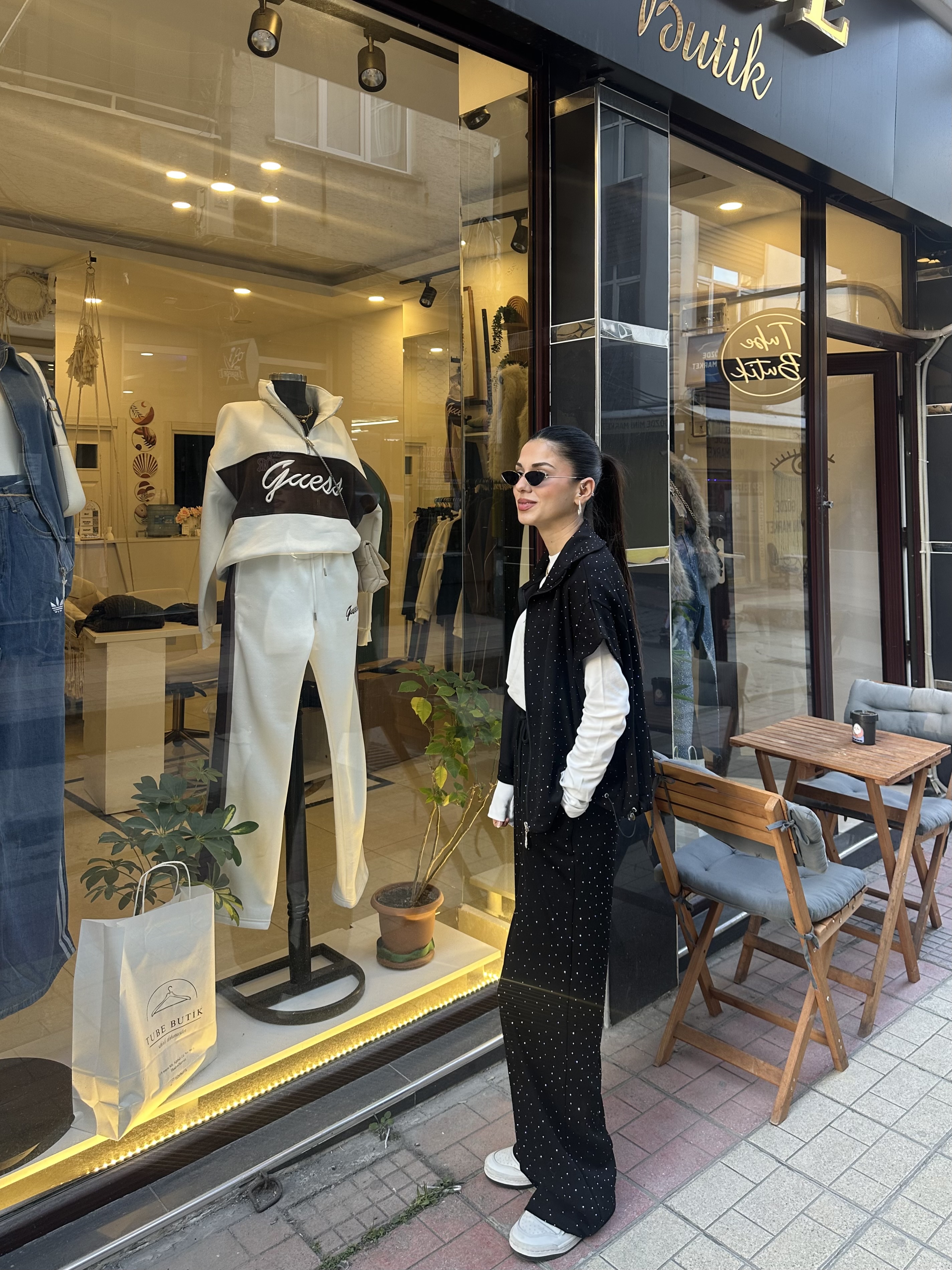 Twst Model Taşlı Modal Kumaş Yelekli Siyah Takım