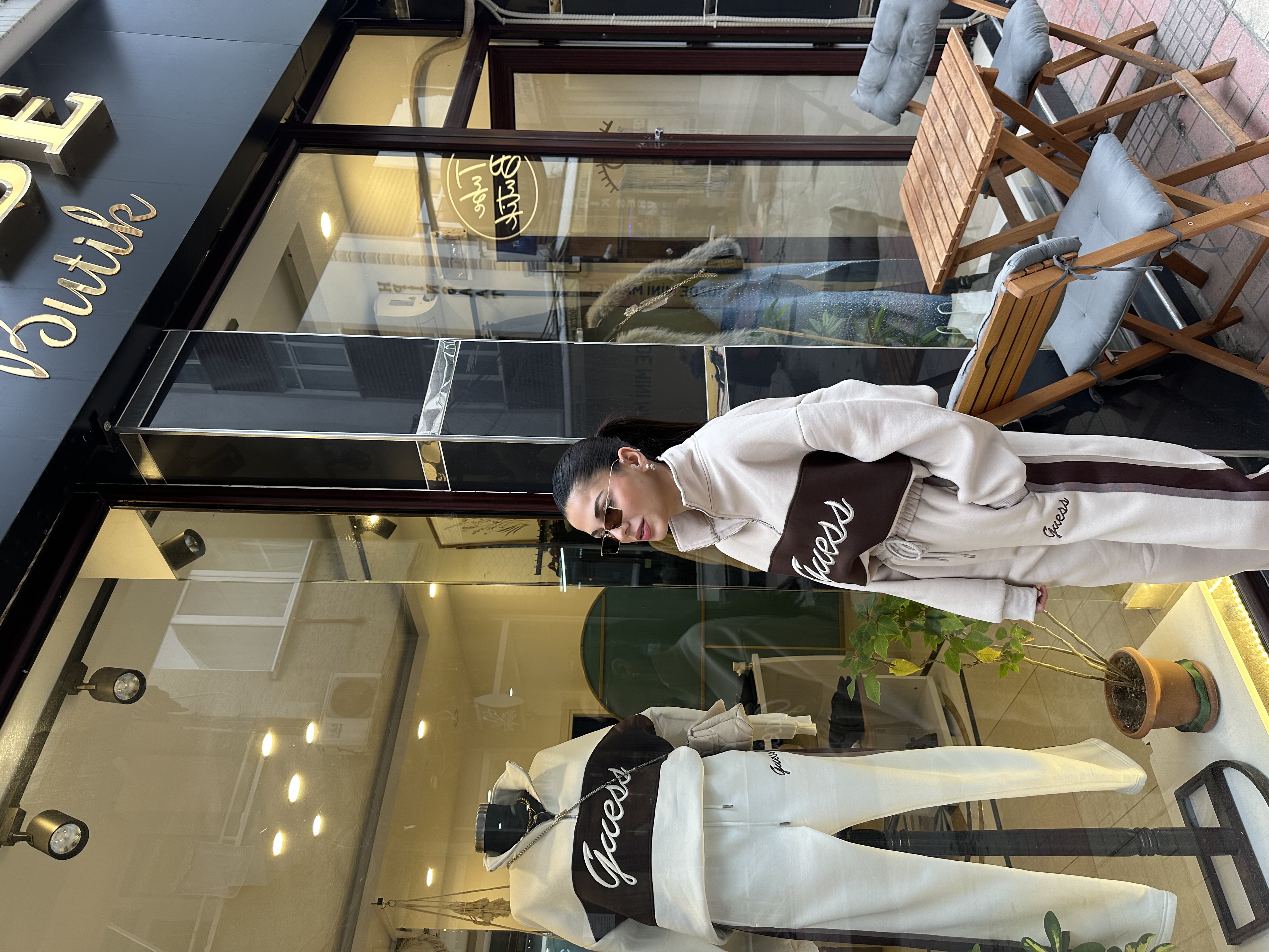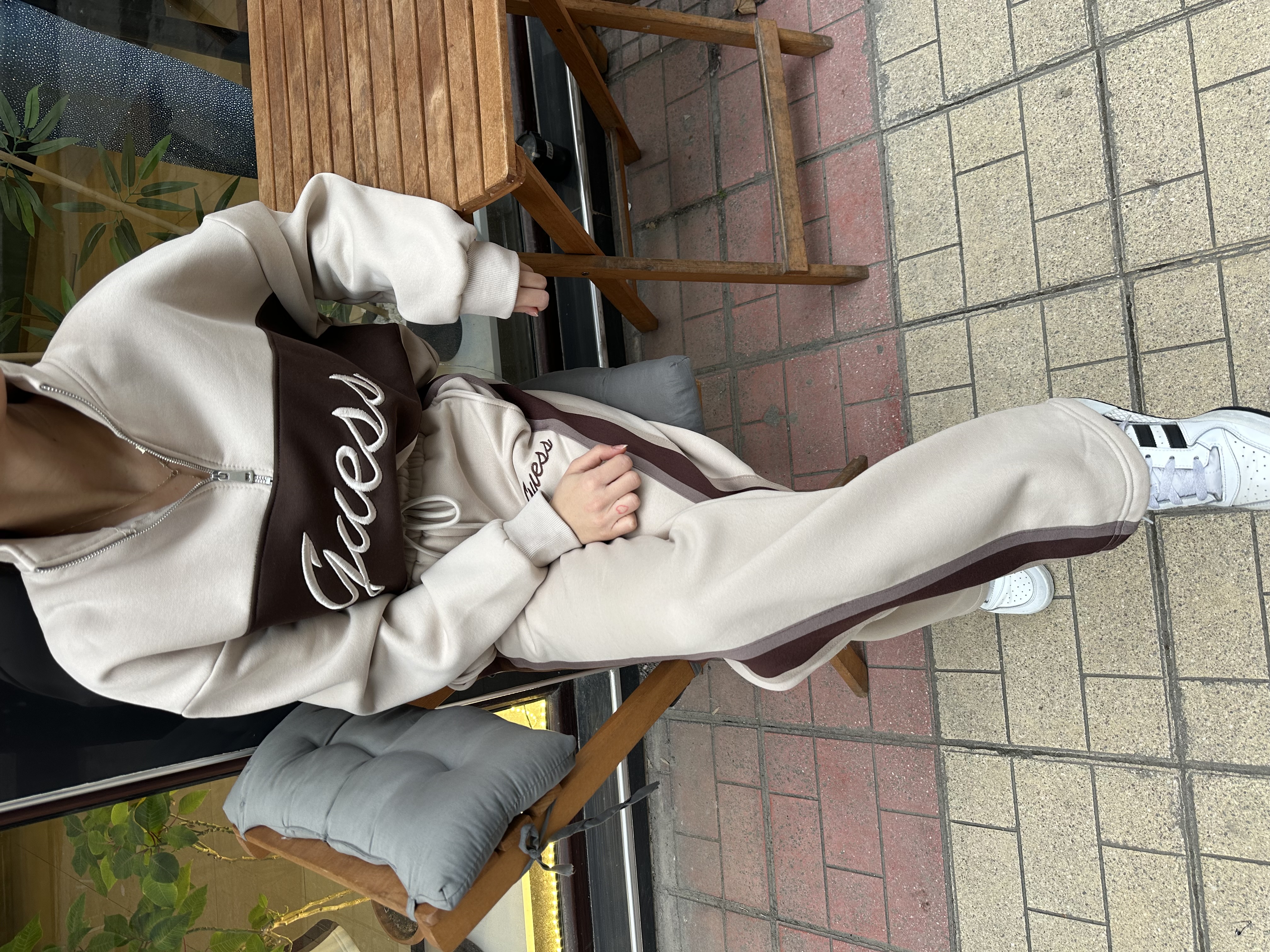 Premium Marka Model Logolu Yarım Fermuarlı Bej Takım