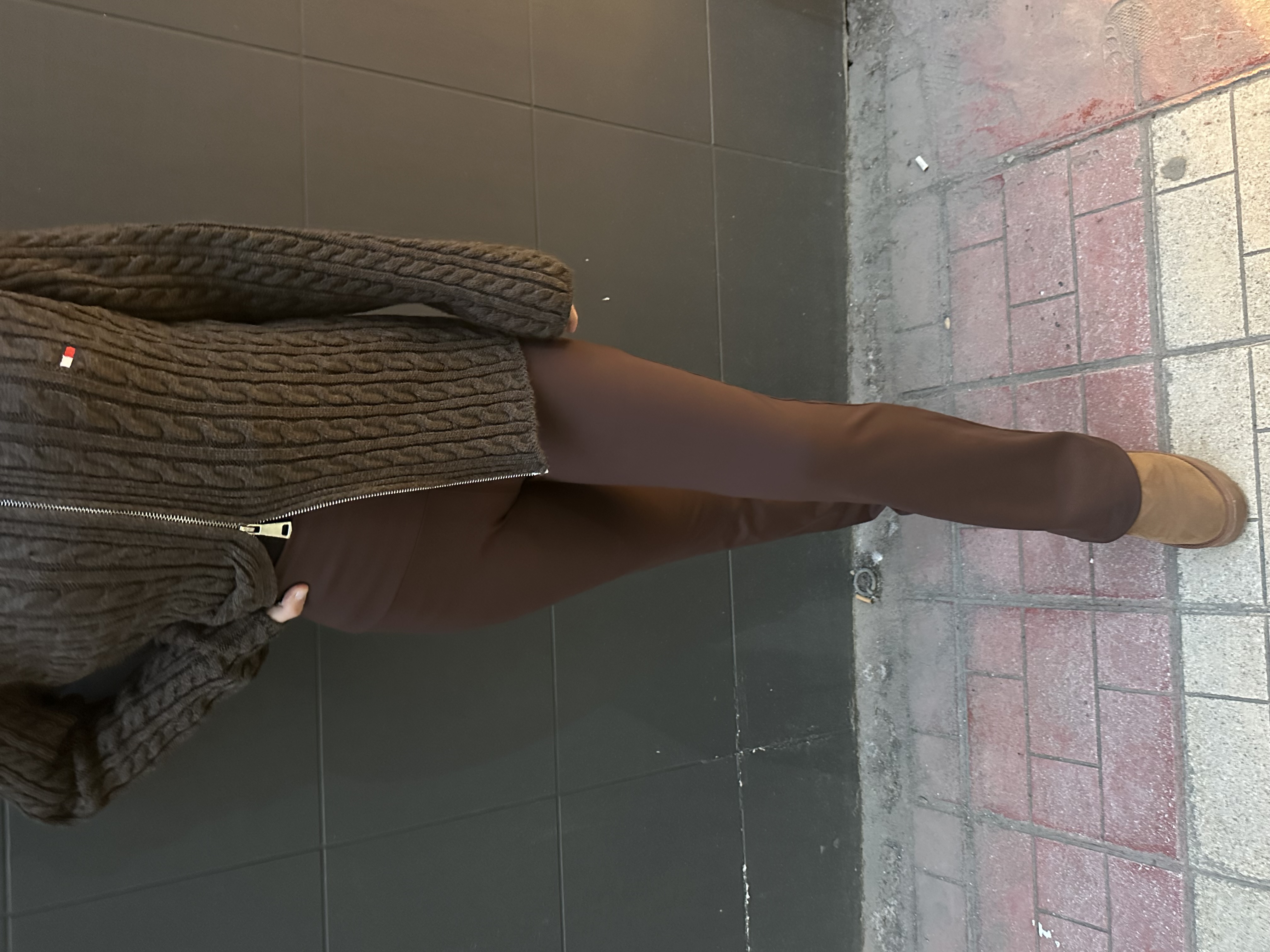 Oysh Kart Etiketli Yüksek Bel İspanyol Paça Acı Kahve Tayt
