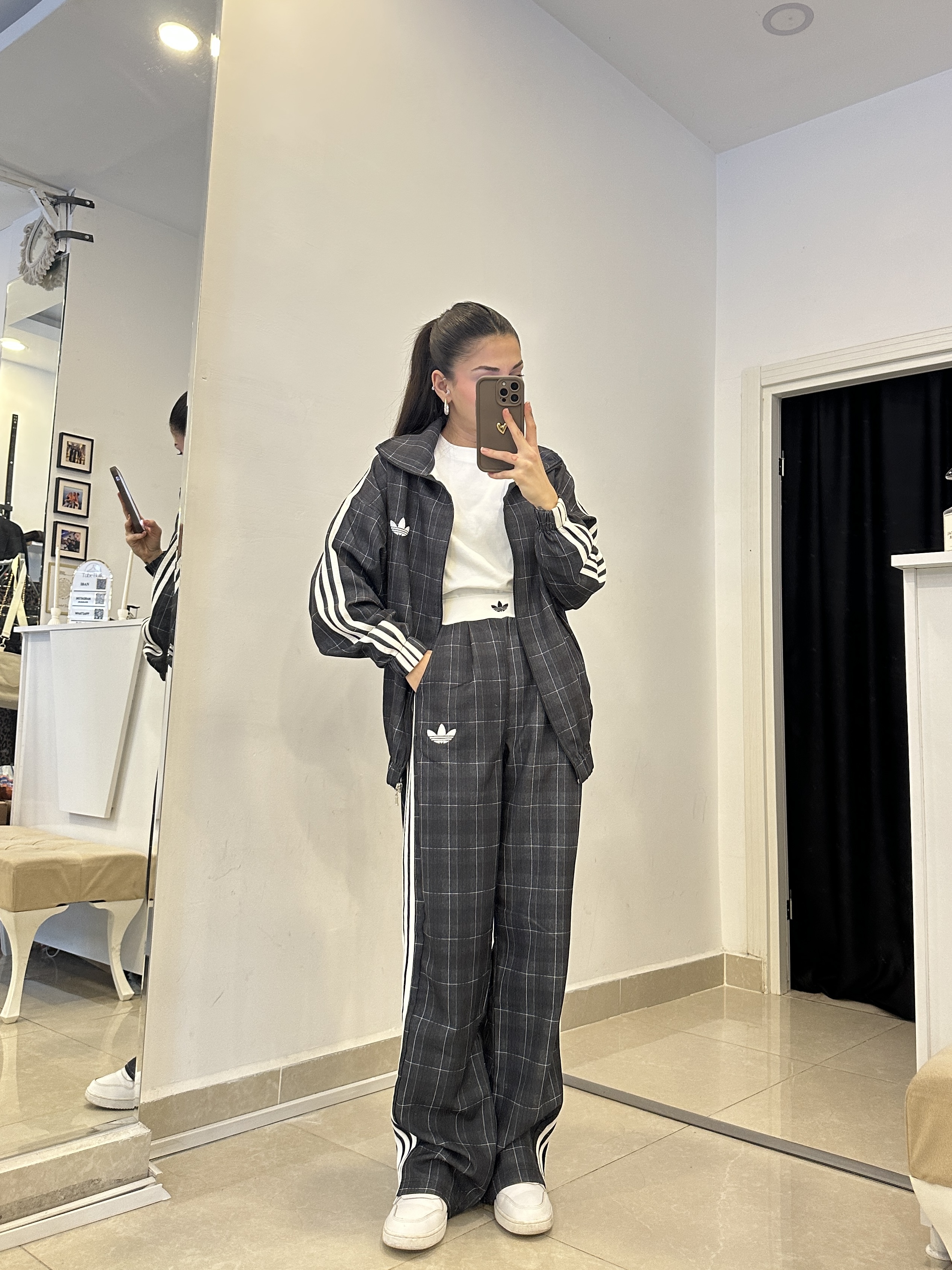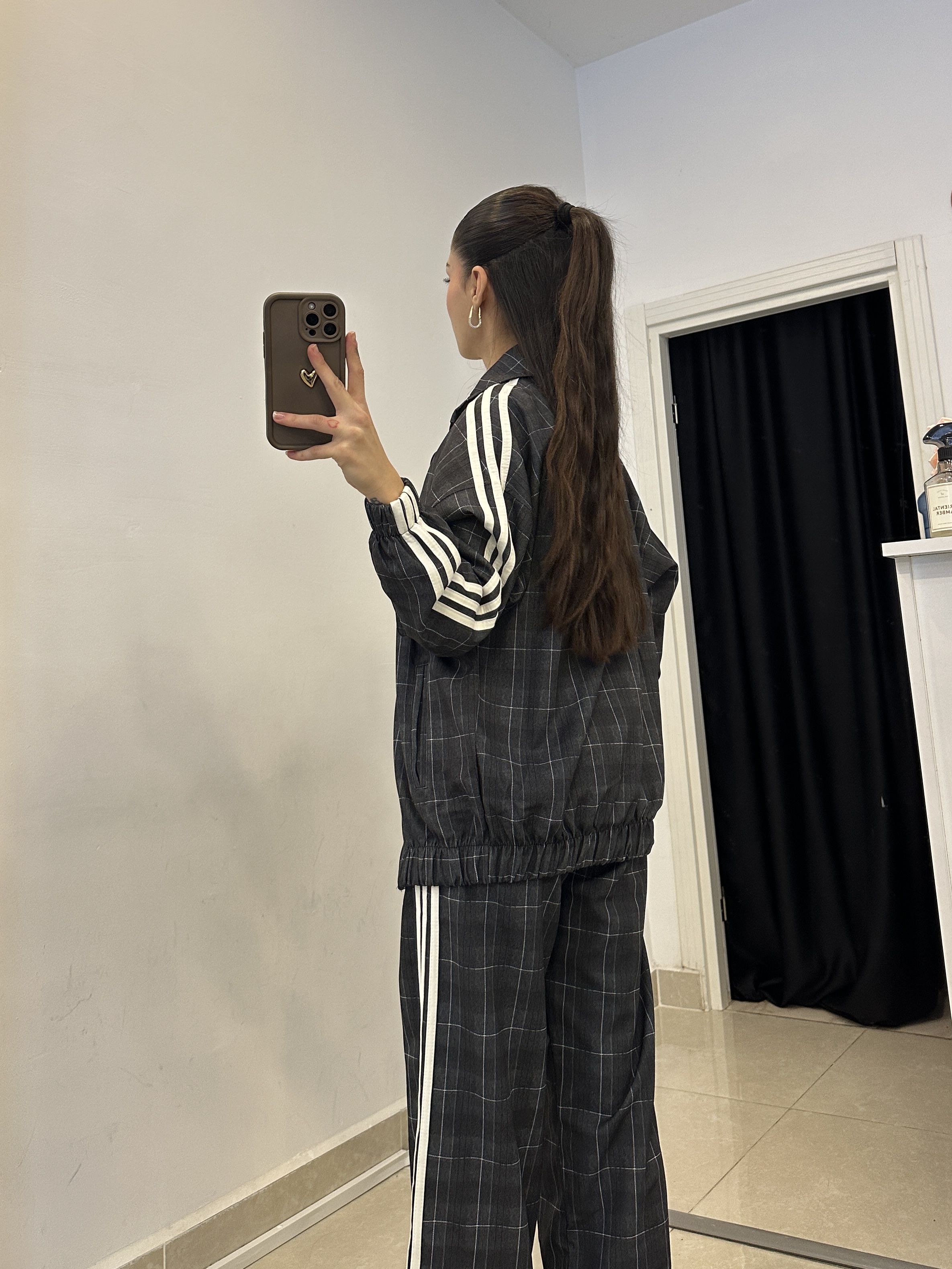 Orj. Marka Yanları Şeri̇tli̇ Ekoseli̇ Antrasi̇t Takım | Tube Butik