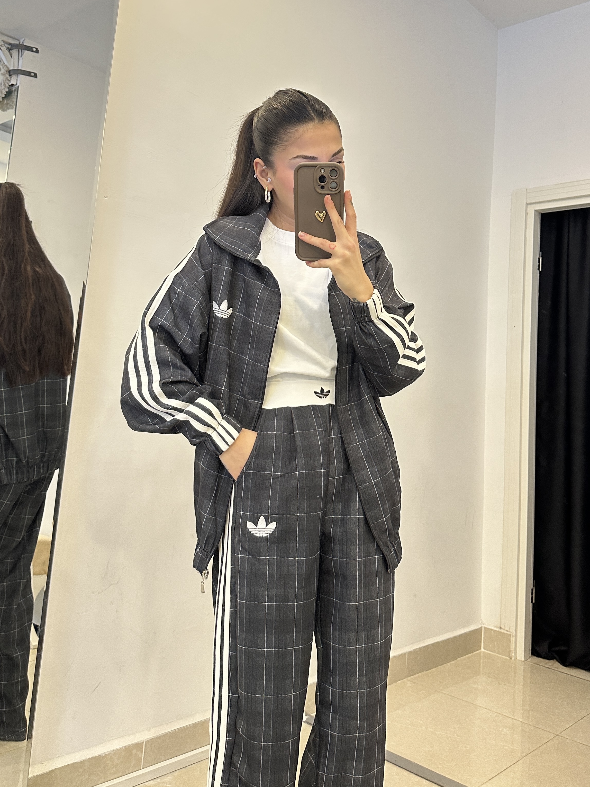 Orj. Marka Yanları Şeritli Ekoseli Antrasit Takım